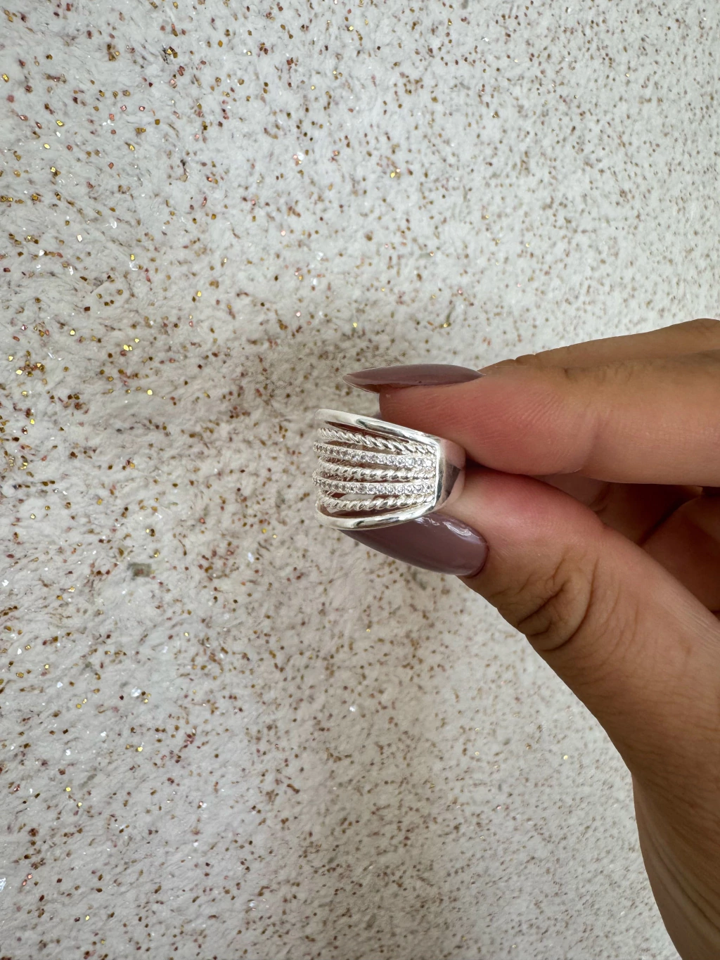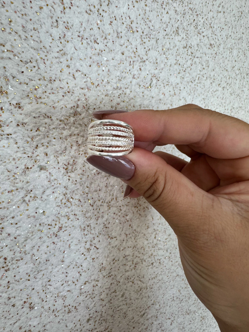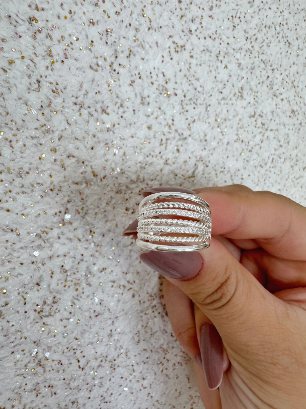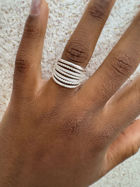 Esse anel é simplesmente deslumbrante! Com um design de 7 linhas que combina estilos lisos, cravejados e trançados, ele é perfeito para quem adora uma peça sofisticada e única. Banhado a prata, é uma joia que vai fazer você se destacar em qualquer ocasião. E, claro, ele é super confortável, um verdadeiro arraso para sua coleção!