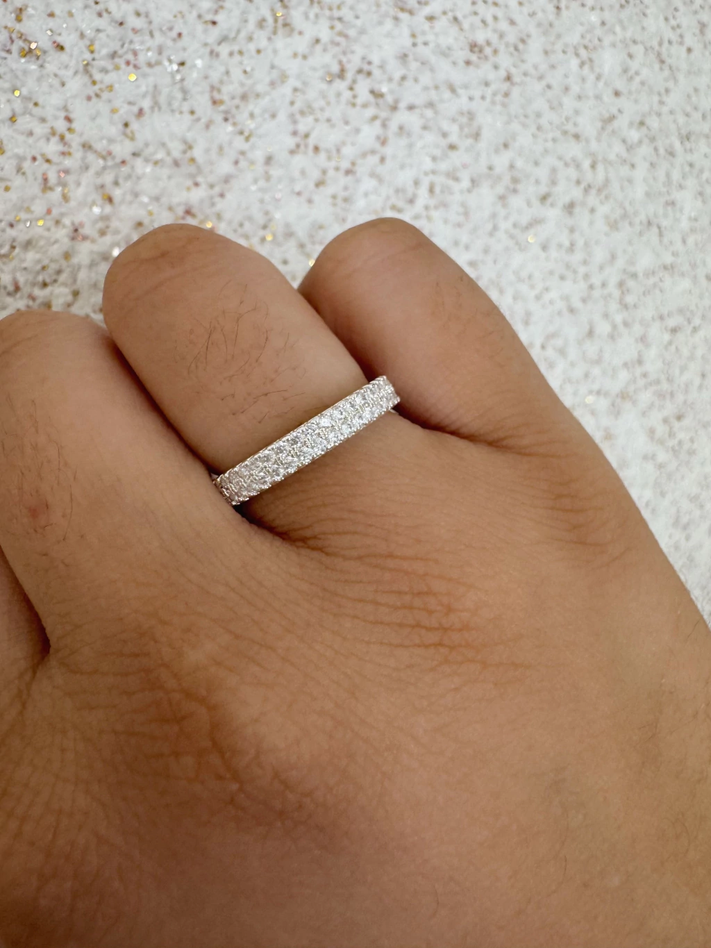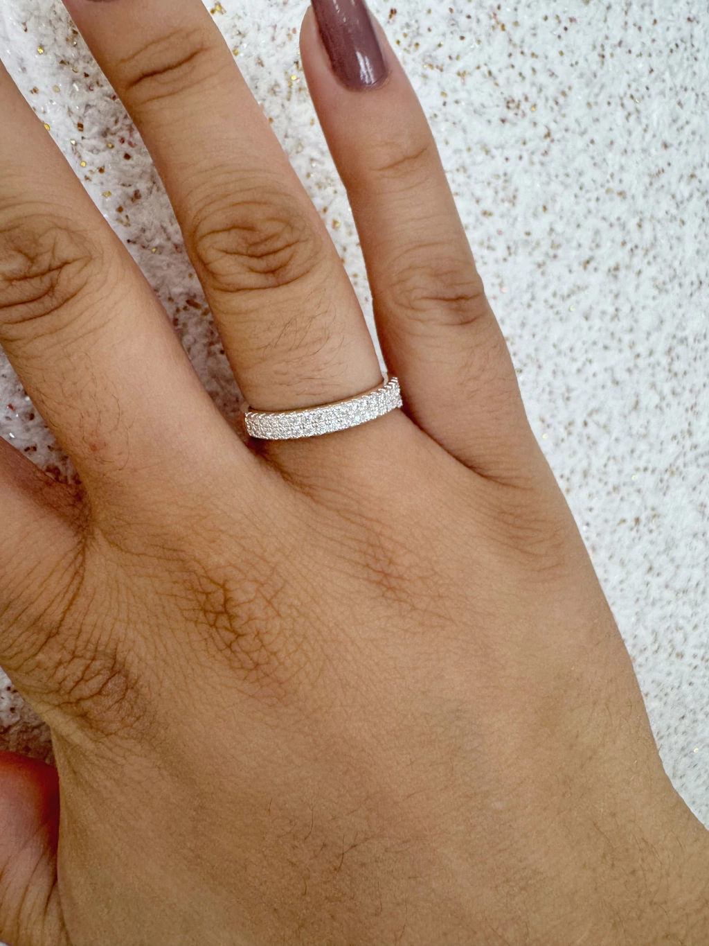 Anel Meia Aliança 2 Linhas Cravejadas - Banhado a Prata