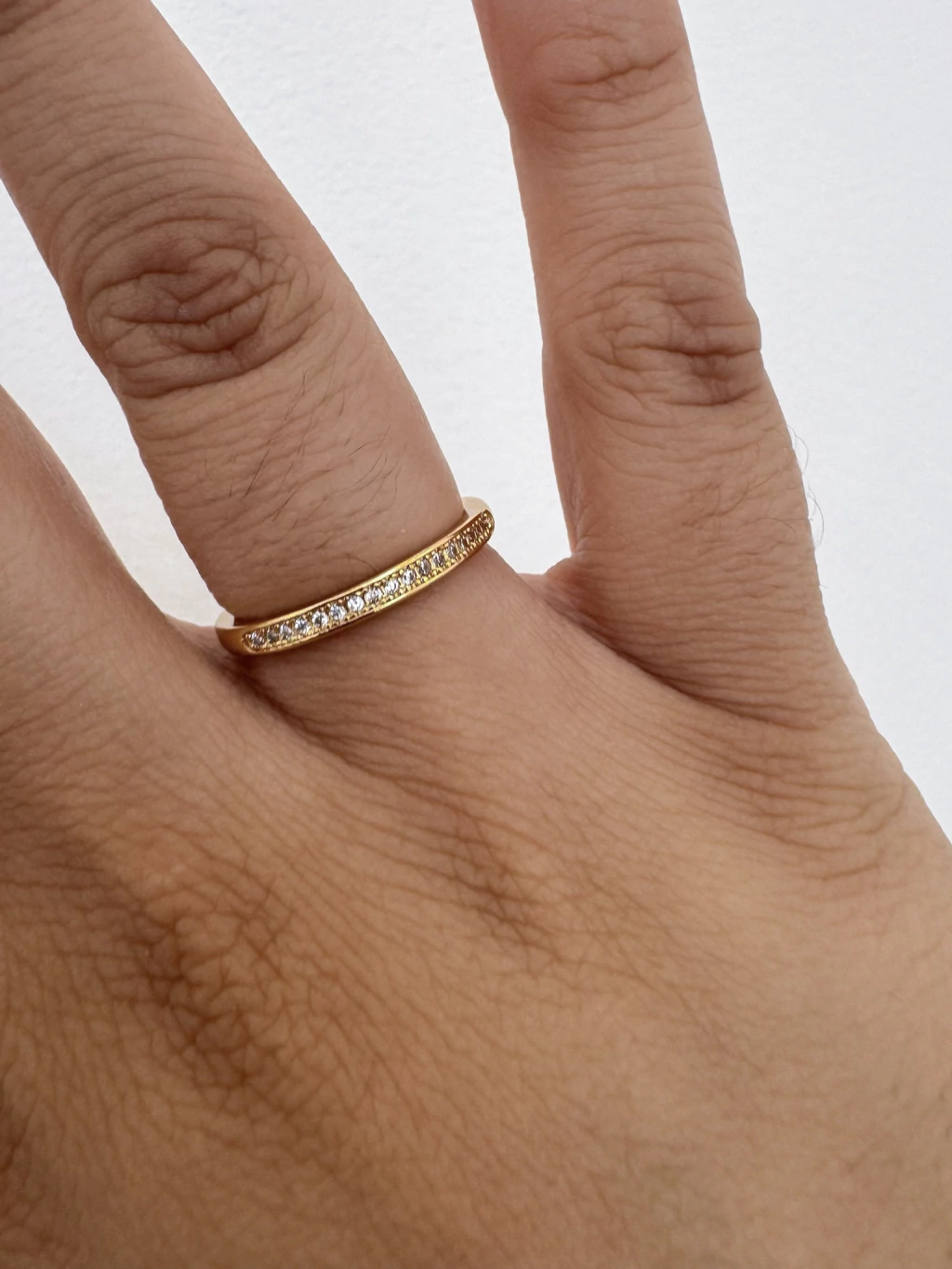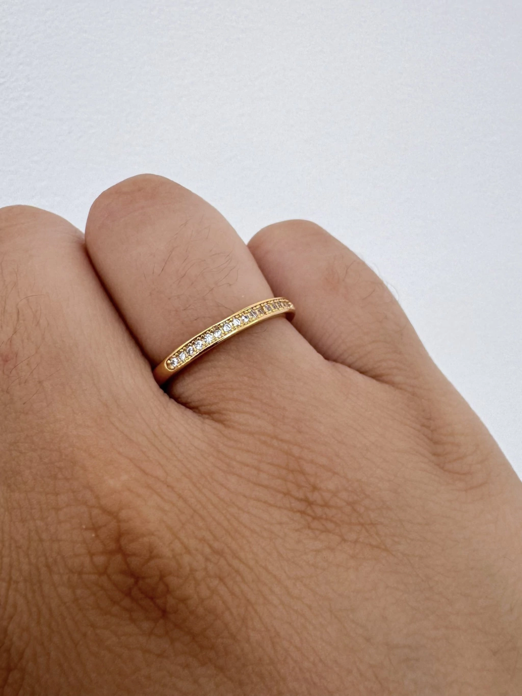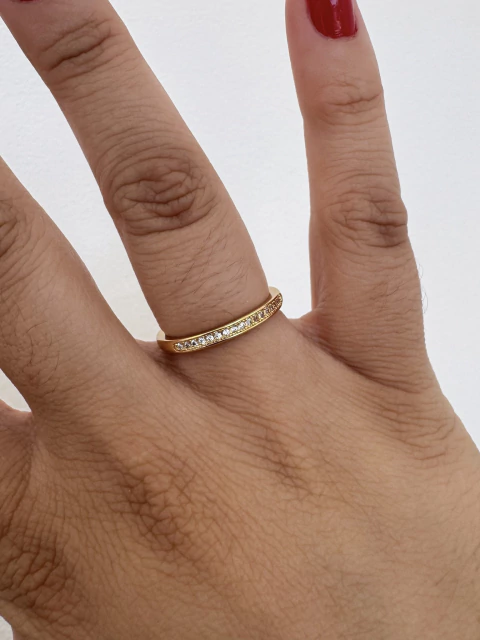 Anel Meia Aliança com Microzircônias - Banhado a Ouro 22k