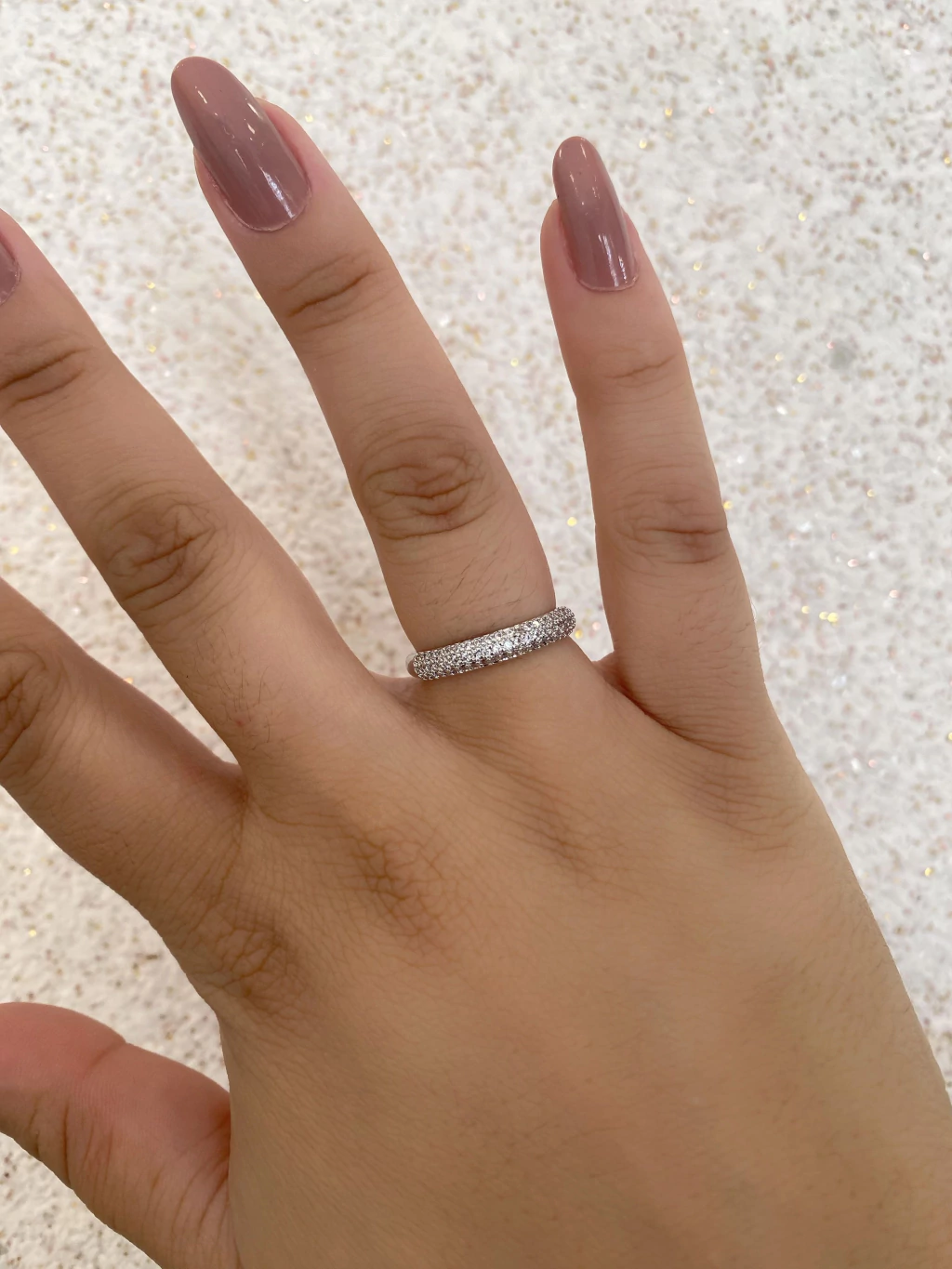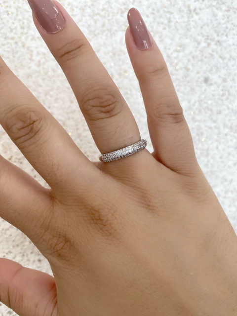 Anel Meia Aliança Grossa Cravejada - Banhado a Ródio Branco