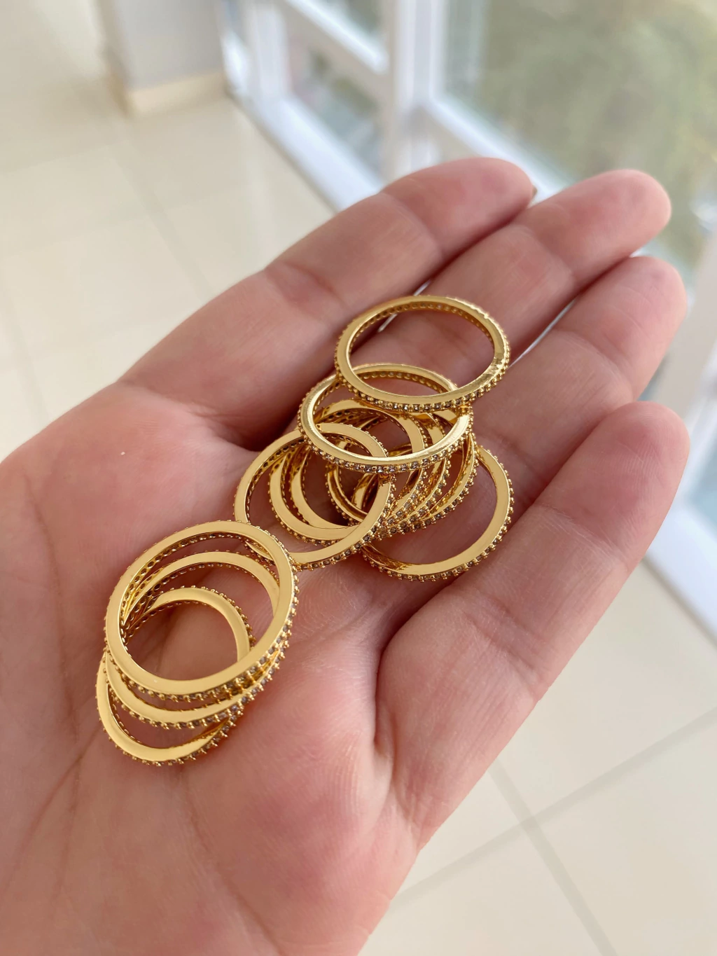As meias alianças com zircônias são uma escolha versátil e deslumbrante para uso diário. Este anel é perfeito para adicionar um toque de glamour ao seu visual, seja para o trabalho, uma ocasião especial ou um evento casual. Sua beleza atemporal e brilho deslumbrante garantem que você se destaque em qualquer lugar.