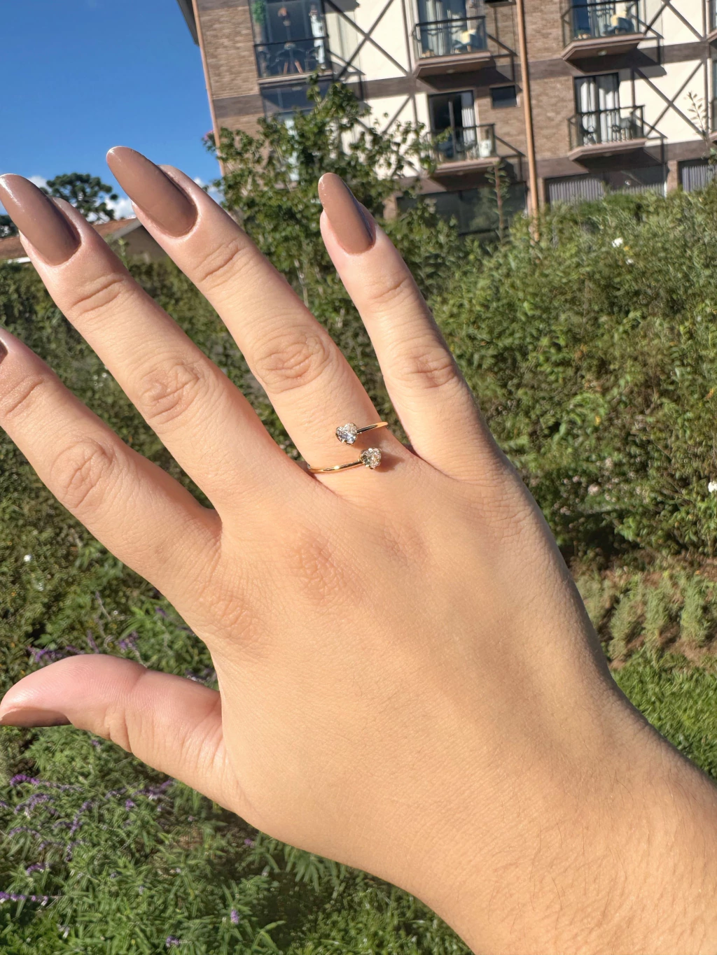 Brilho em dose dupla! Esse anel traz um design delicado e moderno, com dois pontos de luz em zircônia que adicionam um toque sofisticado e elegante. Ideal para quem busca um acessório versátil, perfeito para usar sozinho ou combinar com outras peças.