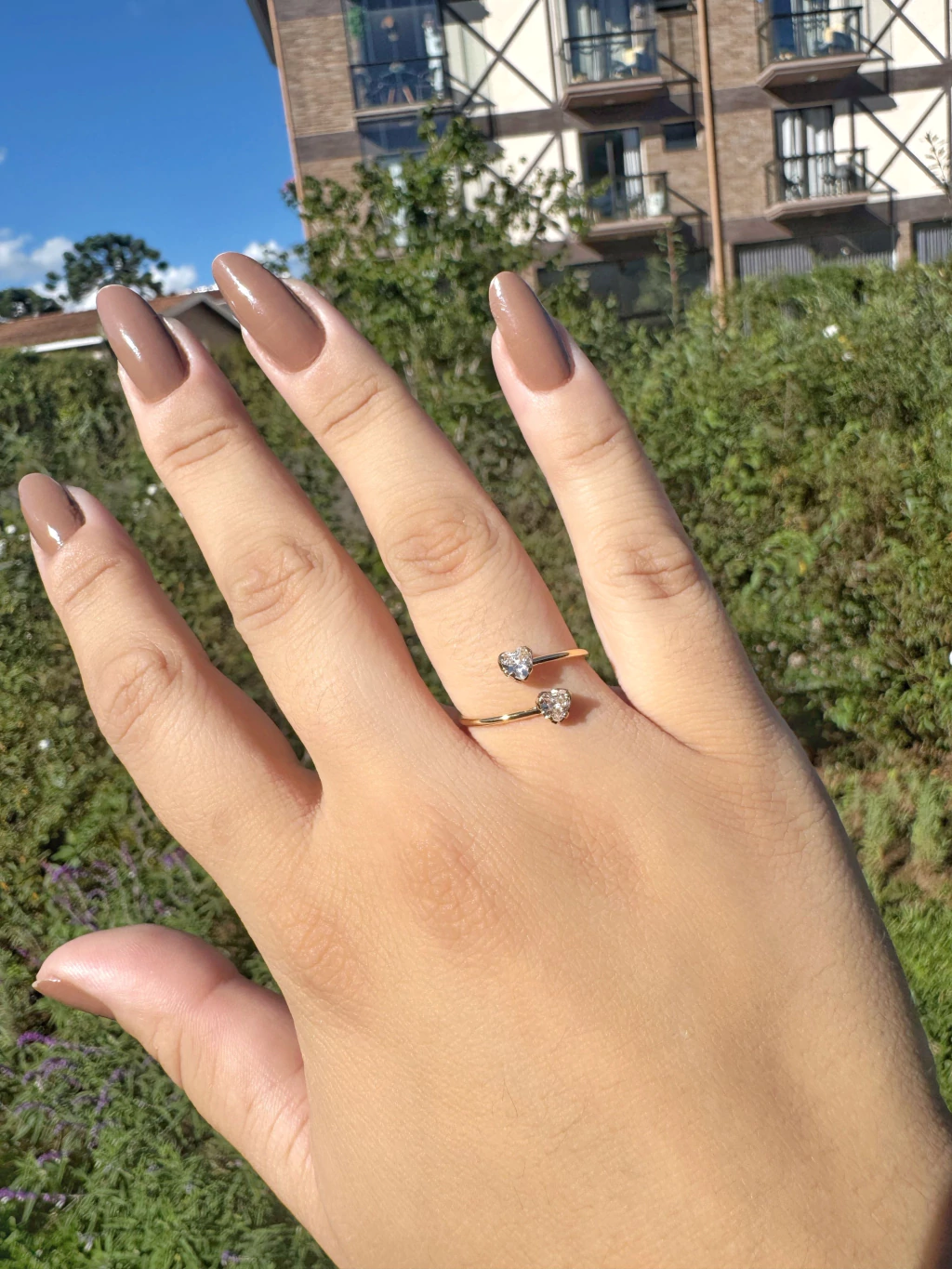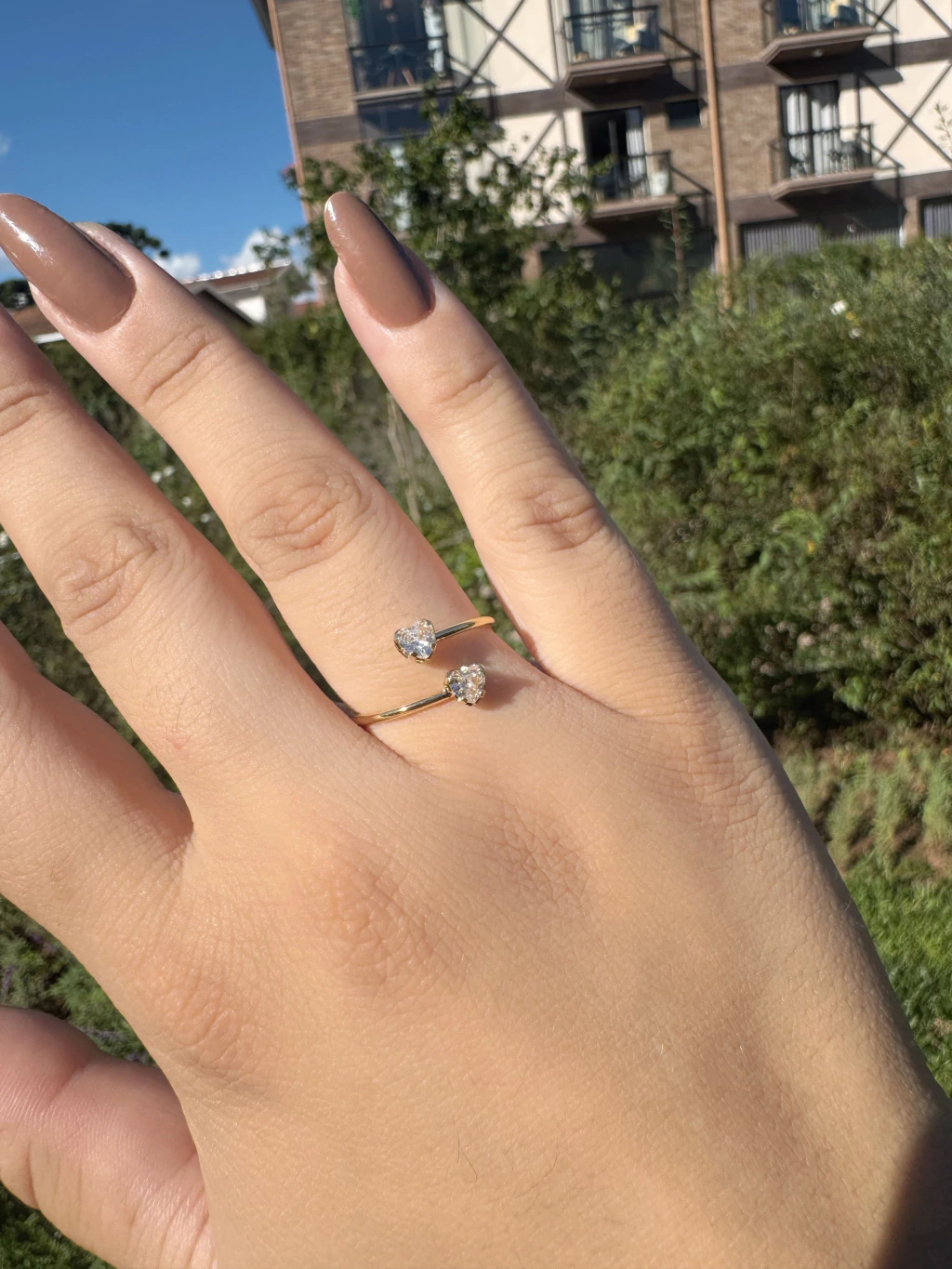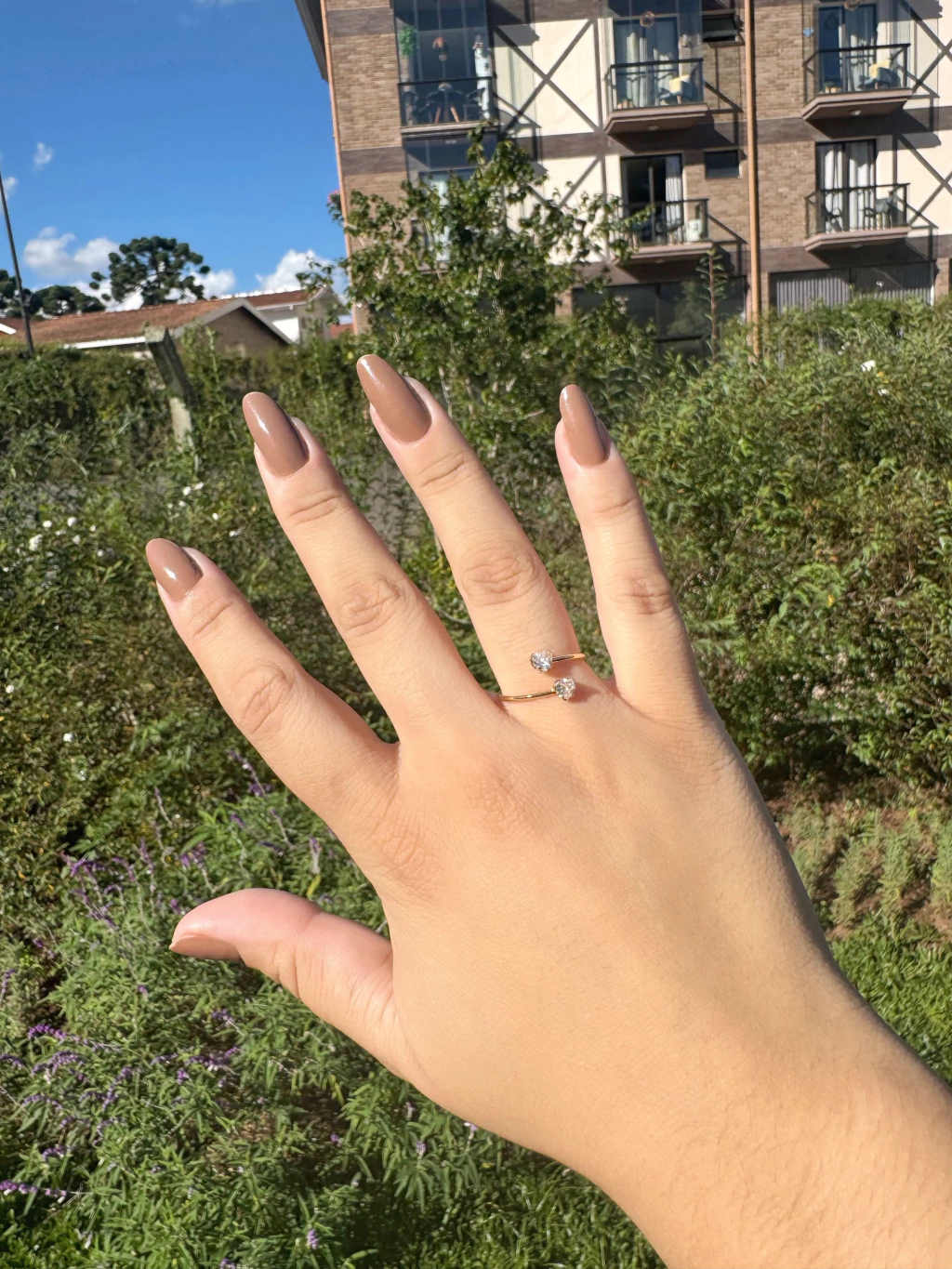 Anel Ponto de Luz Coração Duplo - Banhado a Ouro