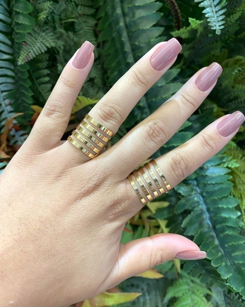 Aneis são aquelas semijoias de luxo que não podem faltar no seu porta-joias. Trazem a elegância e delicadeza desejada, além de dar um up em suas composições em segundos! O Anel Regulável 5 Fios é perfeito para transmitir toda a graça e beleza que você quer.