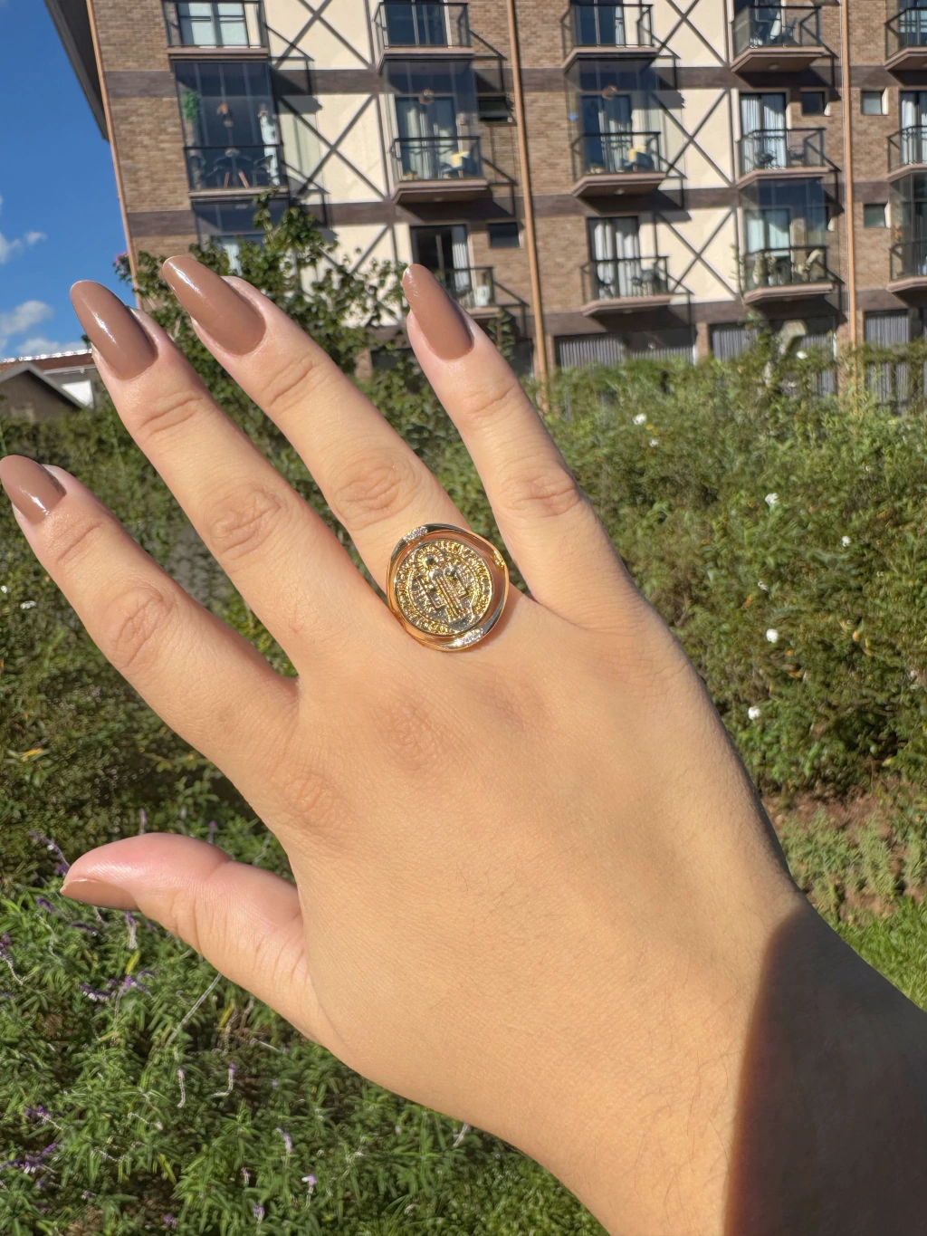 Anel São Bento Cravejado - Banhado a Ouro