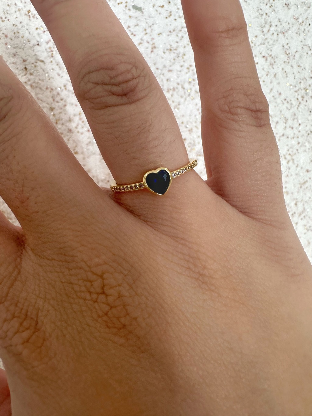 Anel Solitário Coração Azul Escuro com Microzircônias - Banhado a Ouro