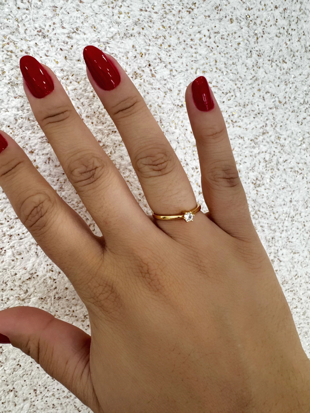 Anel Solitário Liso Zircônia 4mm - Banhado a Ouro