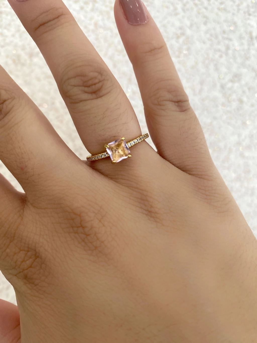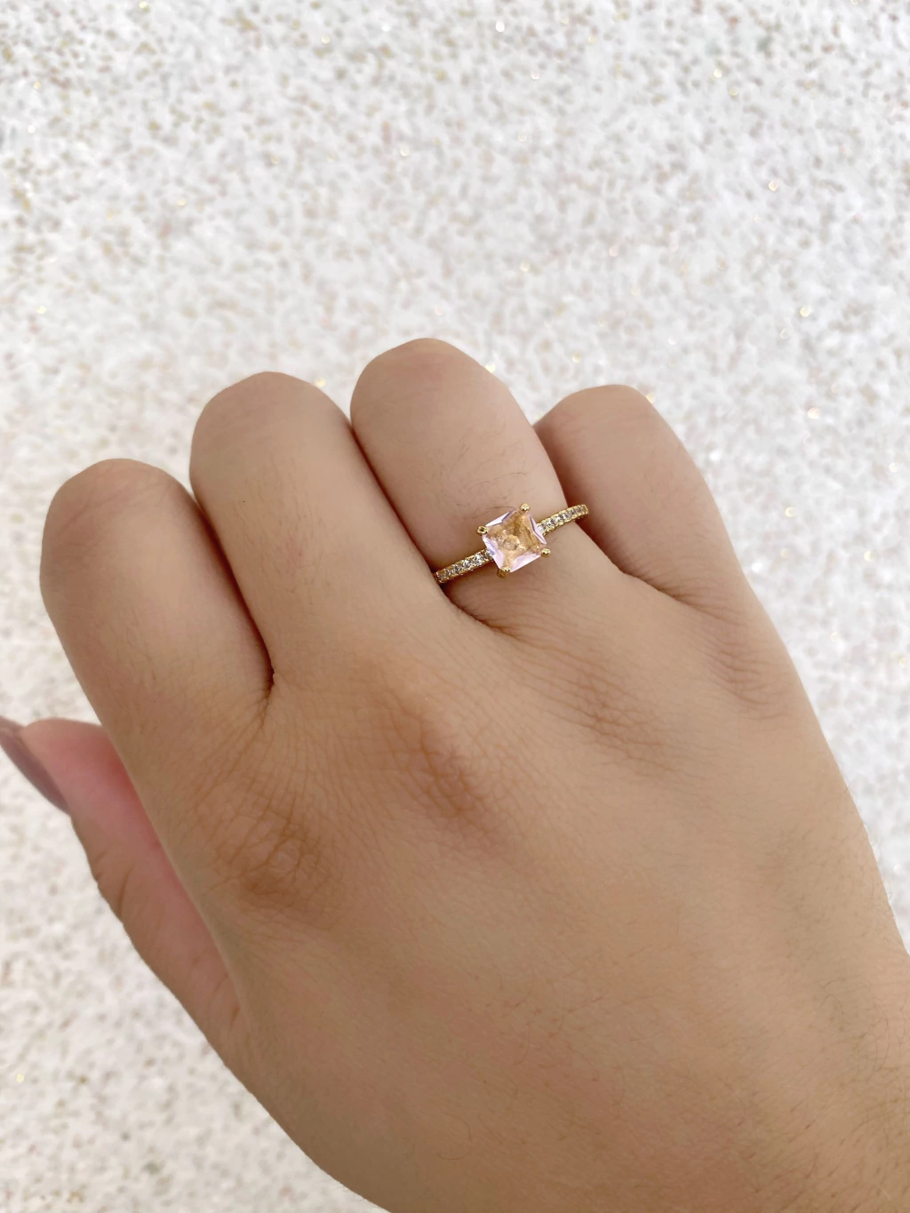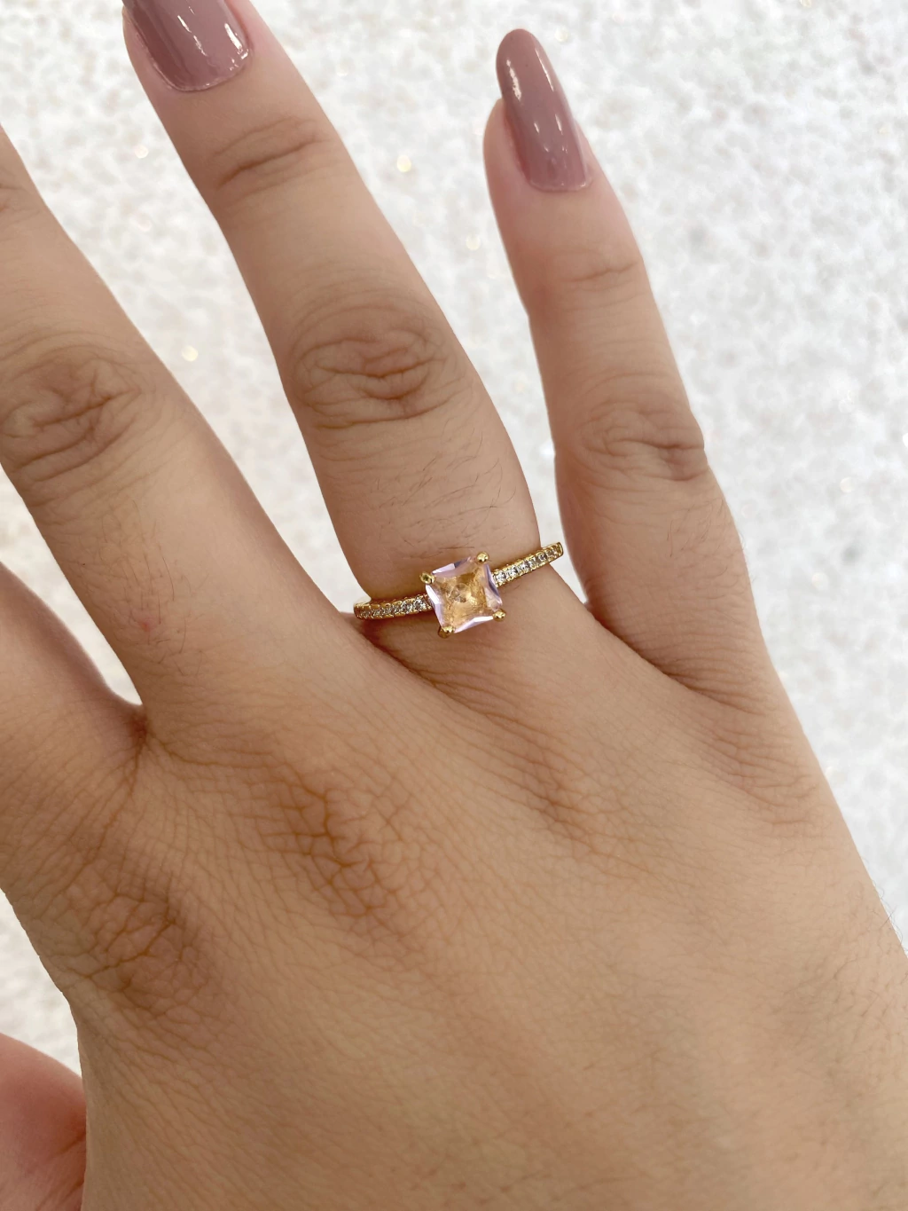 Anel Solitário Coração Rosa com Microzircônias - Banhado a Ouro