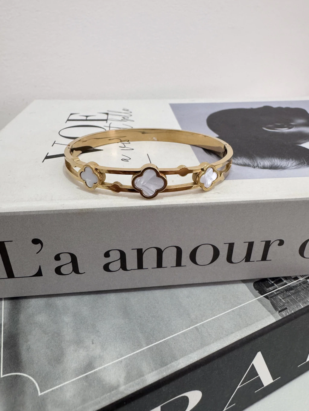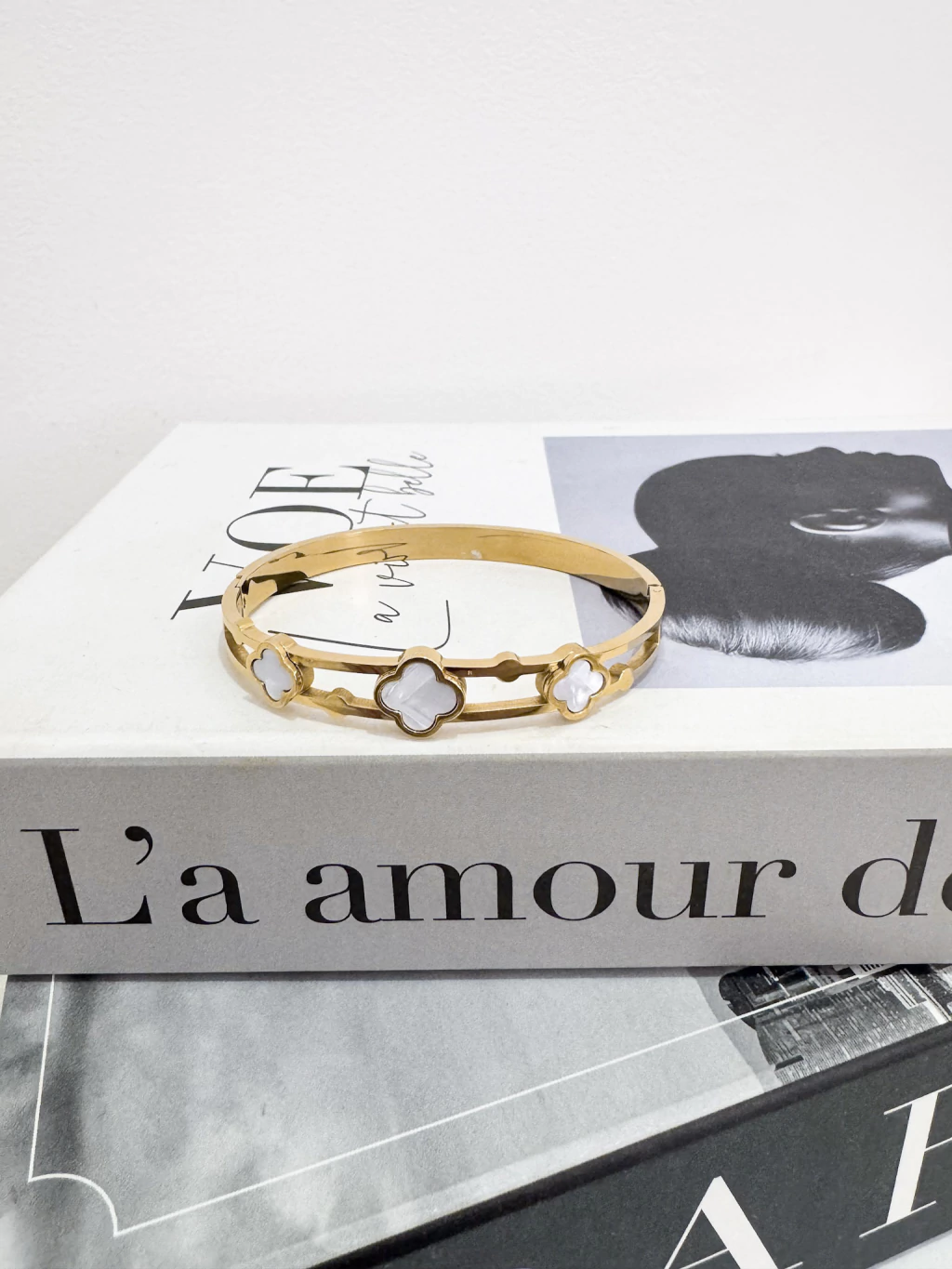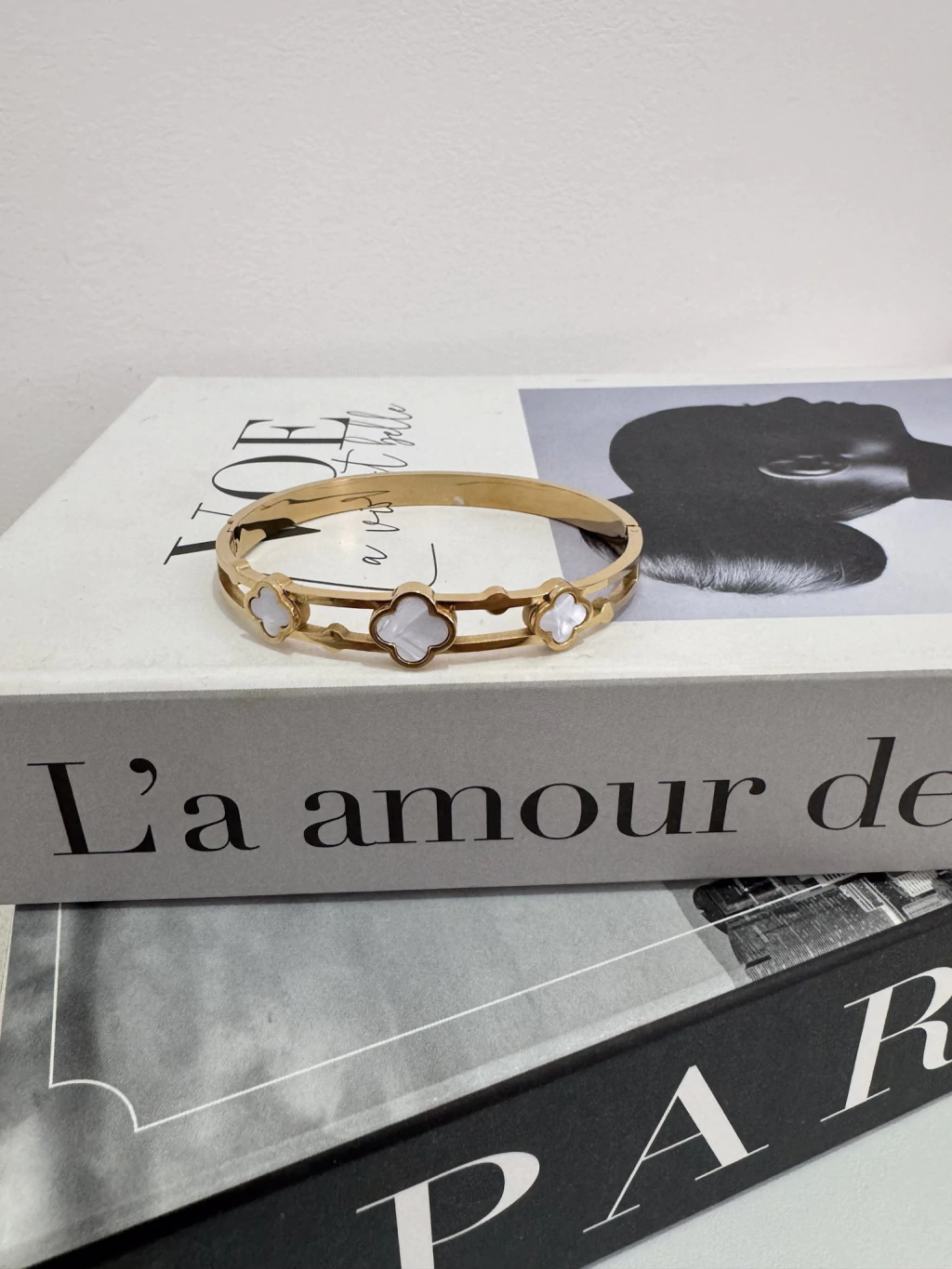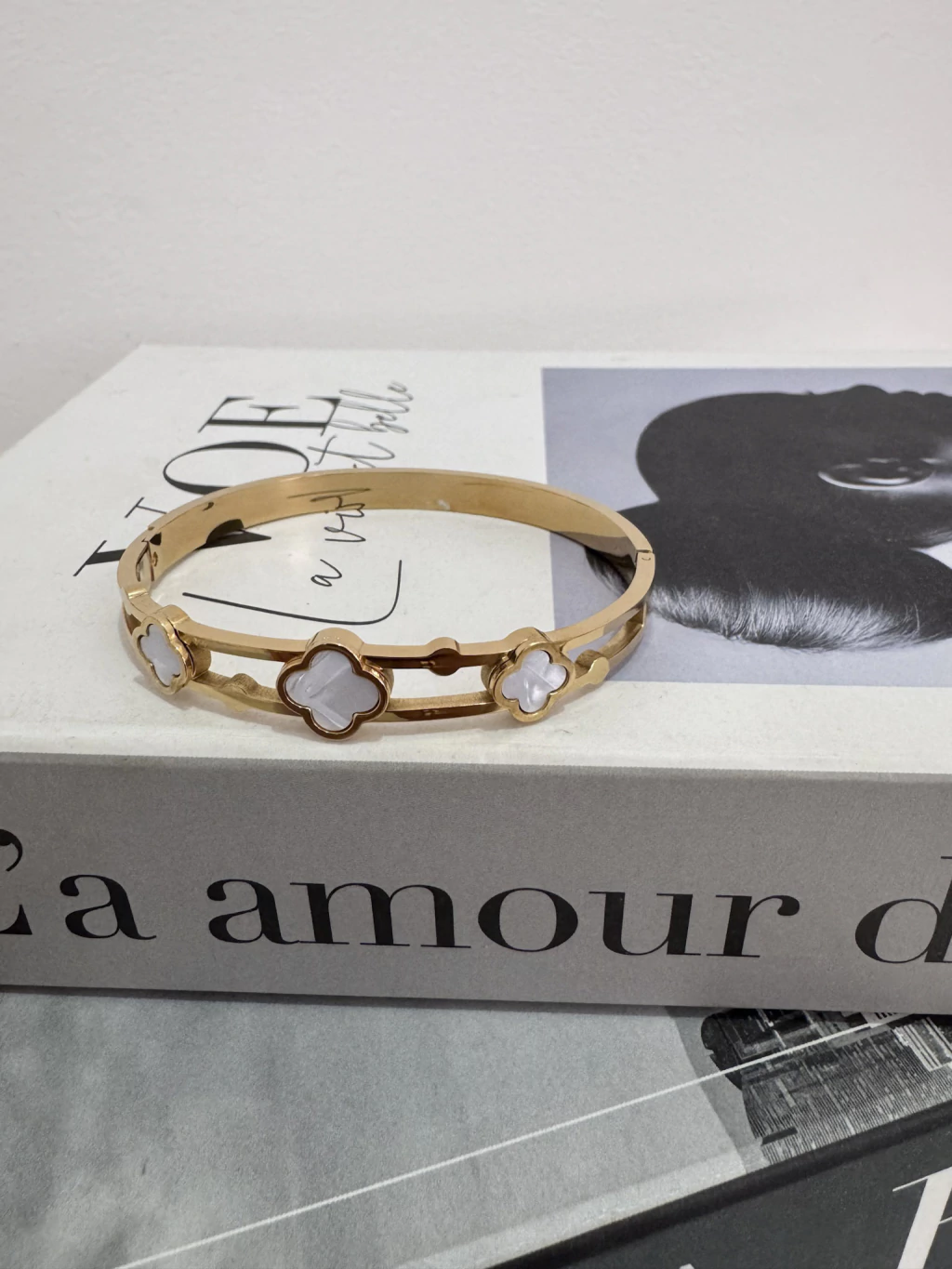 Bracelete 3 Trevos Brancos - Aço Dourado