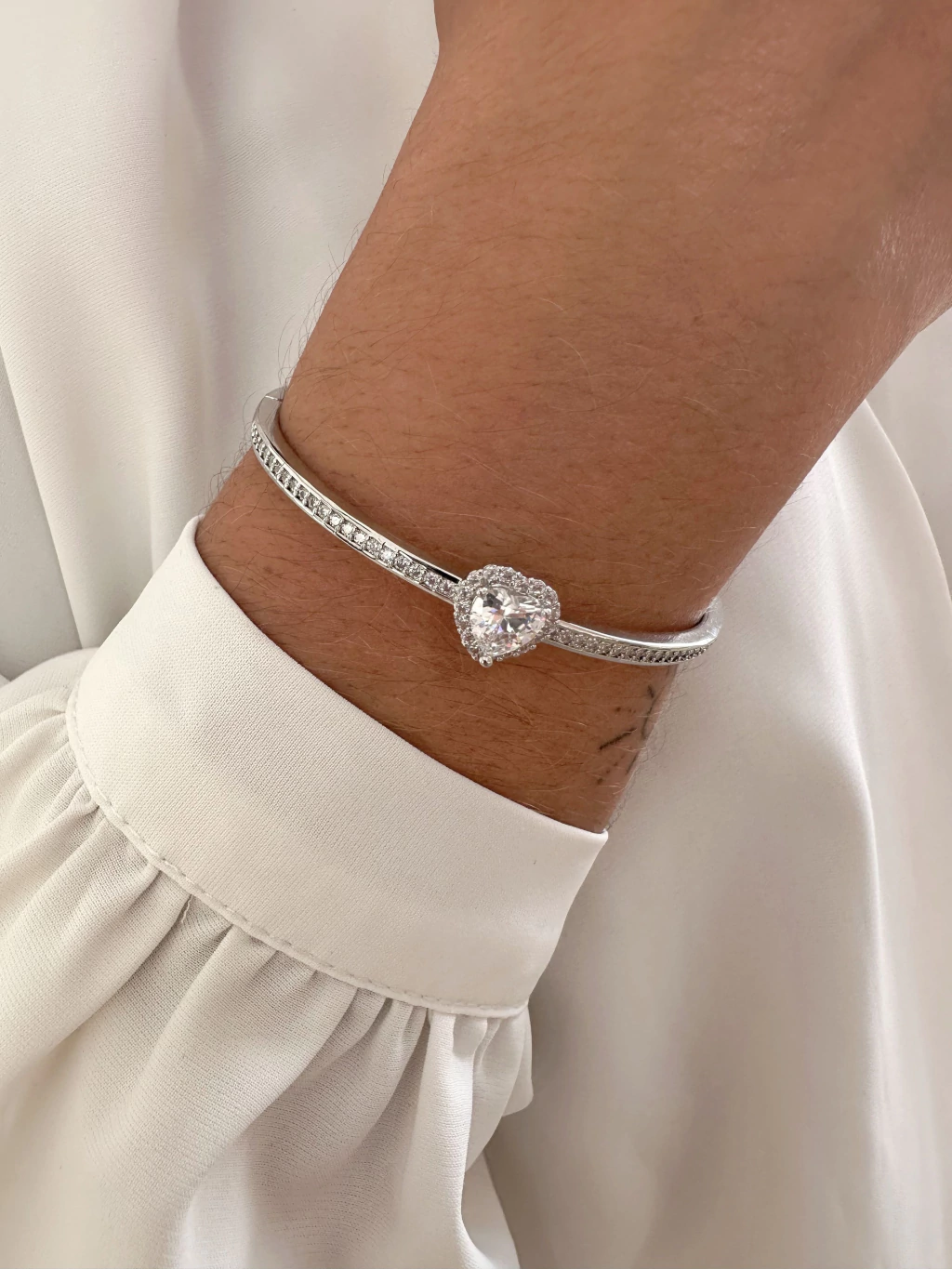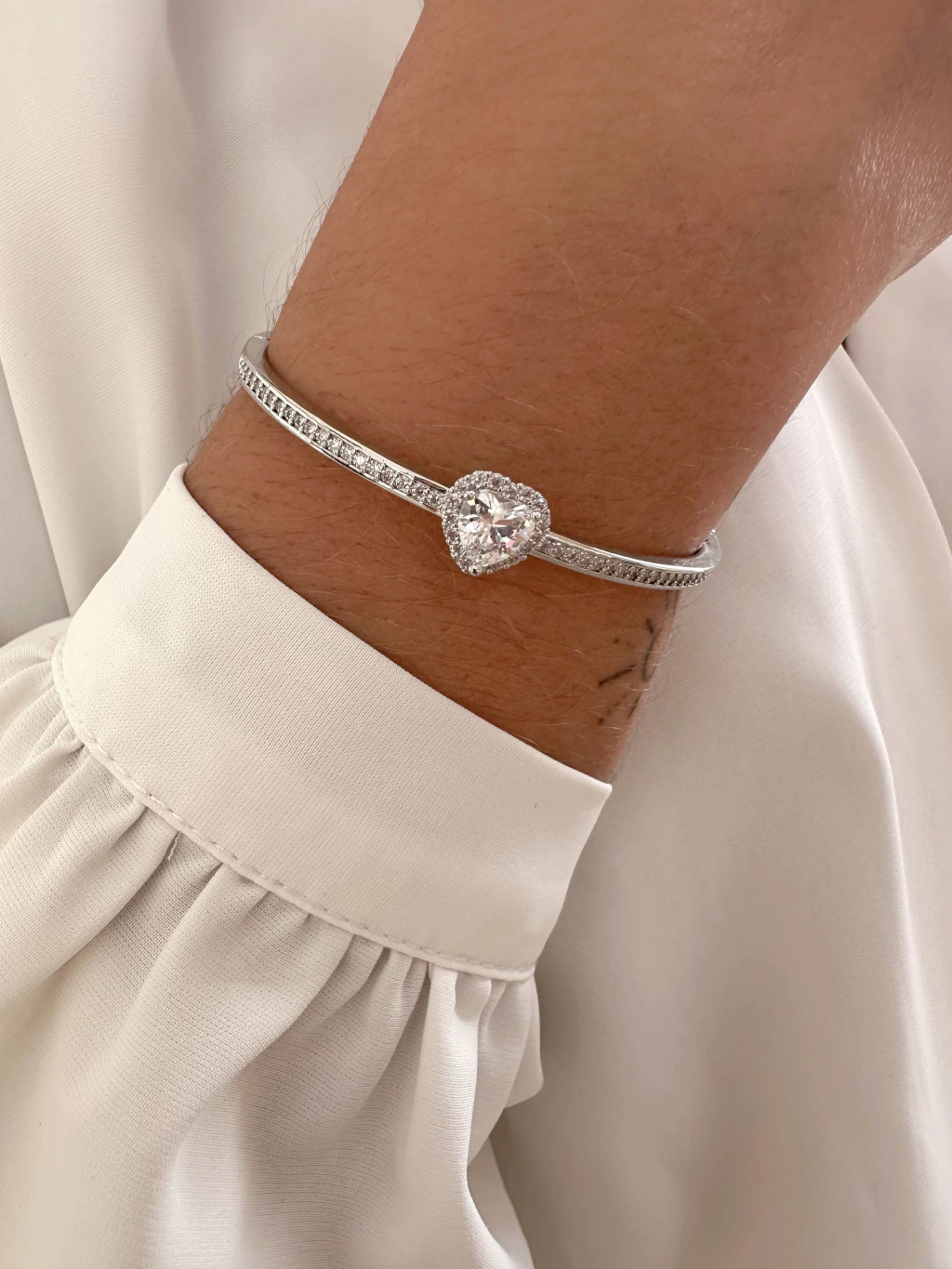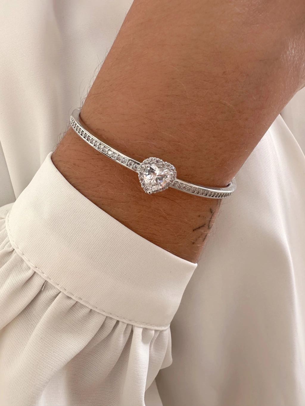 Bracelete Coração Cristal Cravejado com Microzircônias - Banhado a Ródio Branco