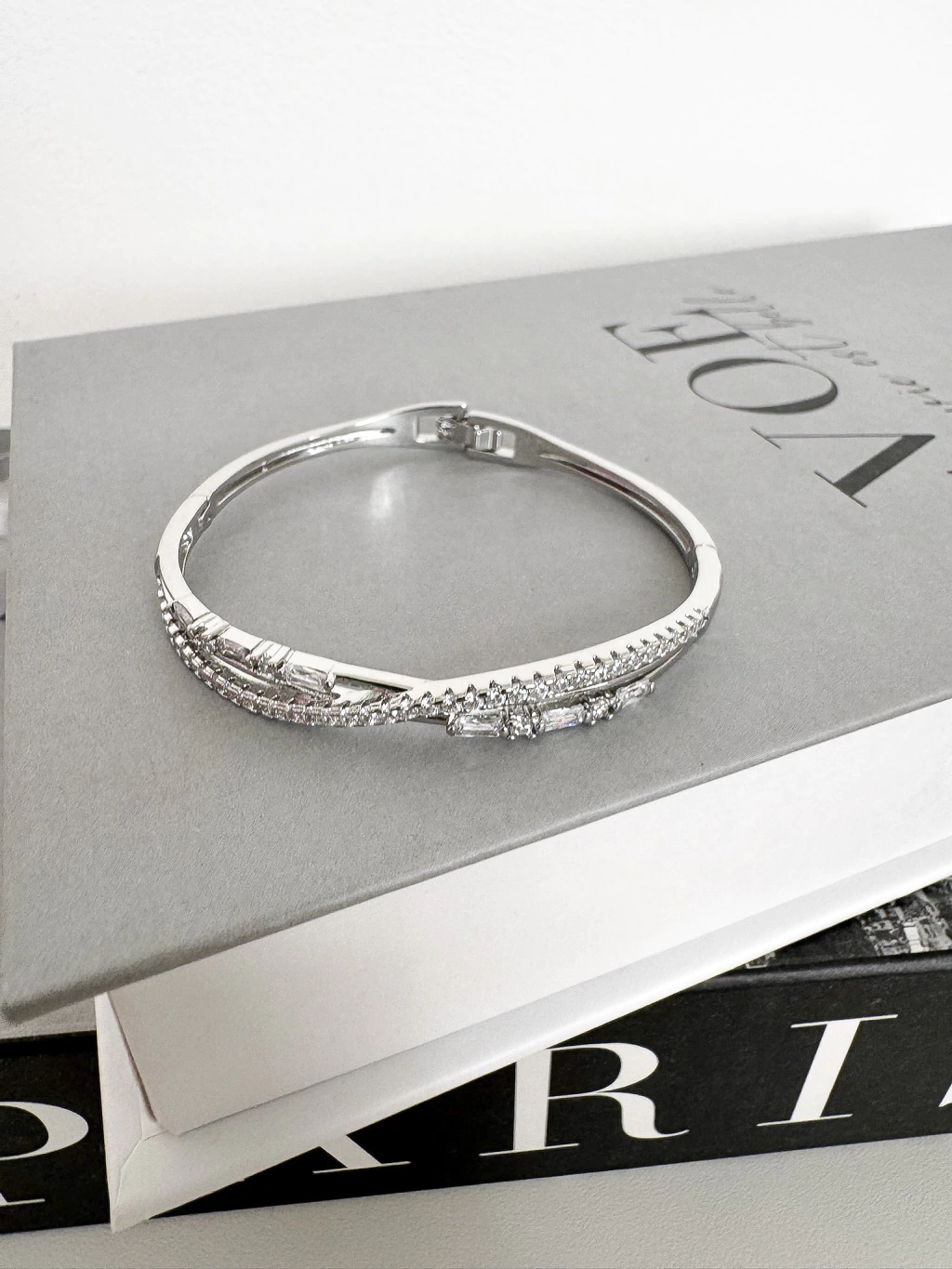 Bracelete em X Cravejado - Banhado a Ródio Branco