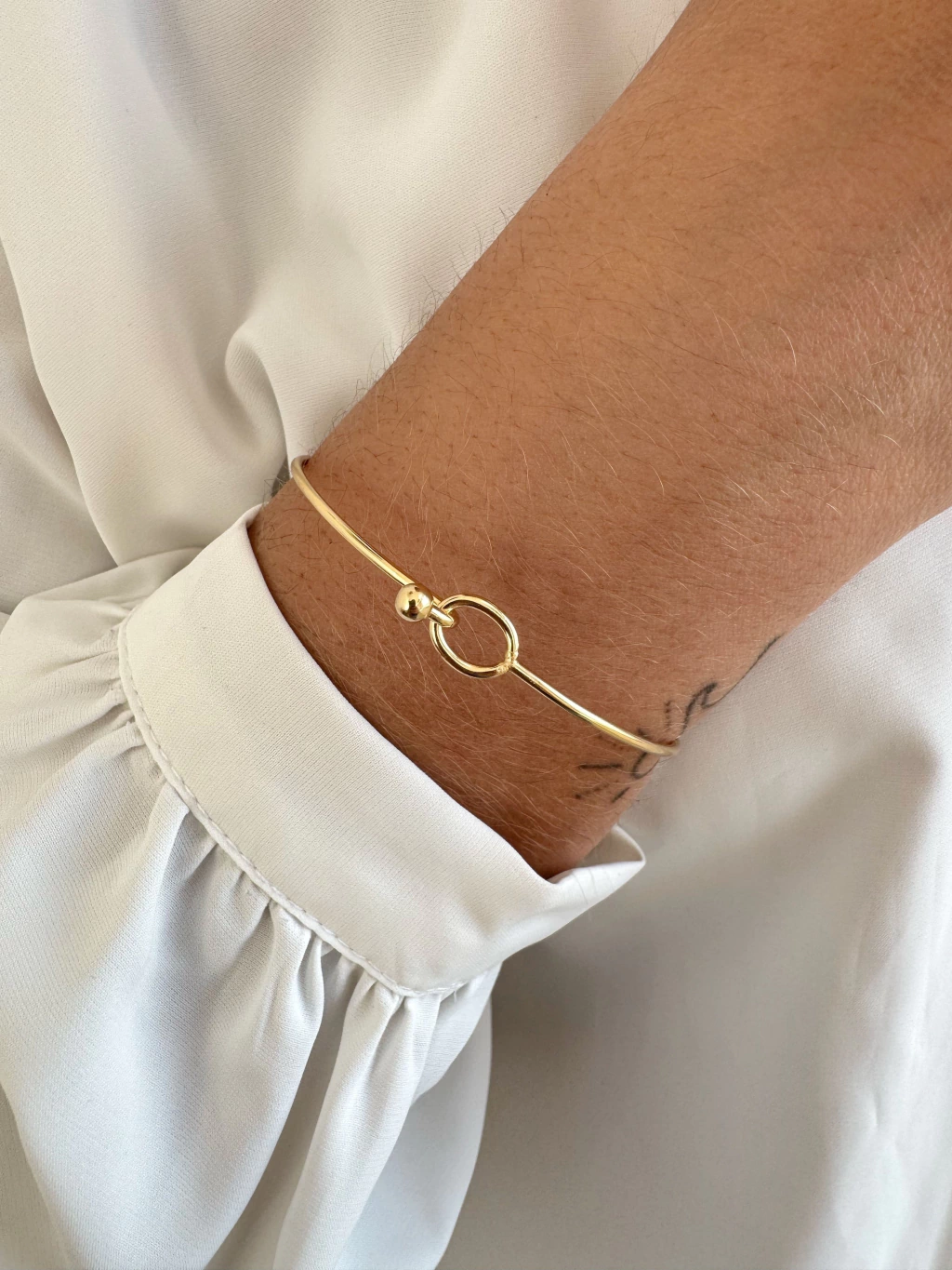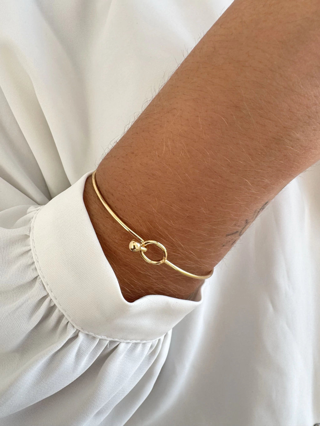 Minimalista com um toque de charme, o Bracelete Liso com Bolinhas é aquela peça coringa que combina com tudo. Ele tem o design rígido e polido, com detalhes de bolinhas nas extremidades que dão um acabamento moderno e delicado. Perfeito para ser usado sozinho ou compondo um mix de braceletes, traz sofisticação de forma sutil e atemporal.