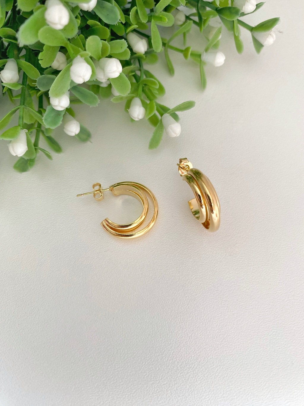 Brinco Argola 3 Fios Lisa - Banhado a Ouro