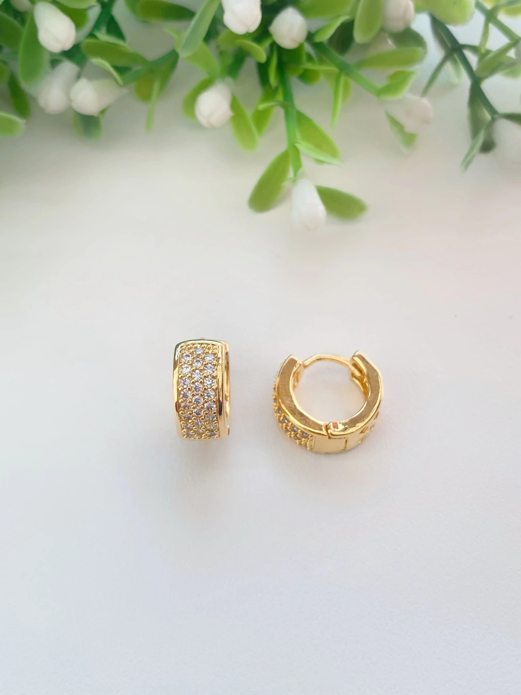 Brinco Argolinha 3 Linhas Cravejada 15mm - Banhado a Ouro