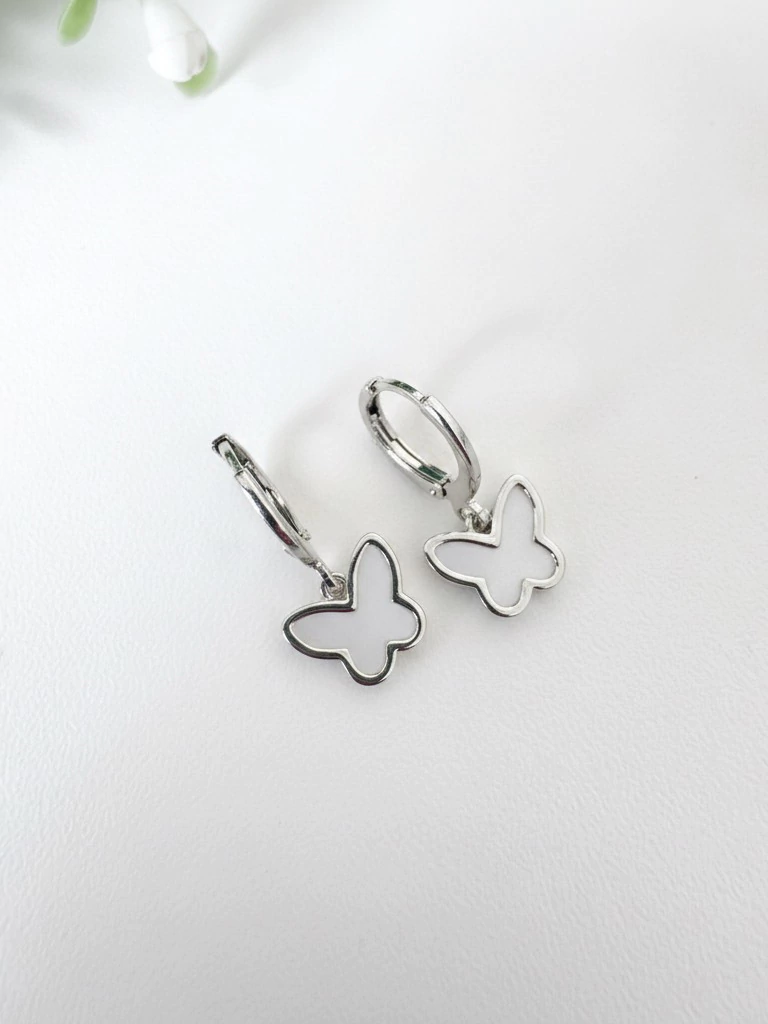 Brinco Argolinha Borboleta Branca - Banhado a Prata