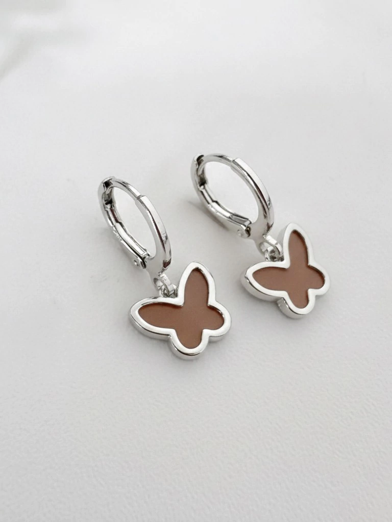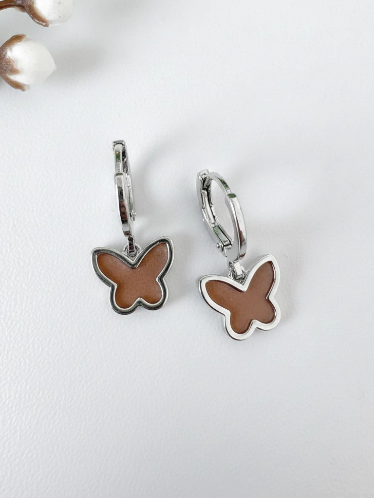 Brinco Argolinha Borboleta Marrom - Banhado a Prata