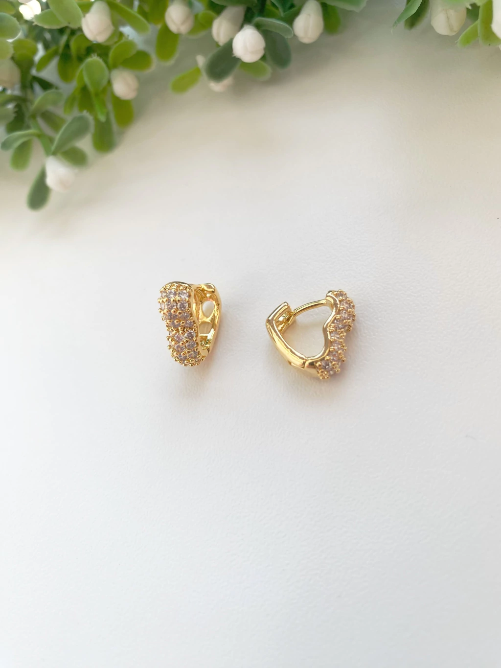 Brinco Argolinha Coração Cravejado 13mm - Banhado a Ouro