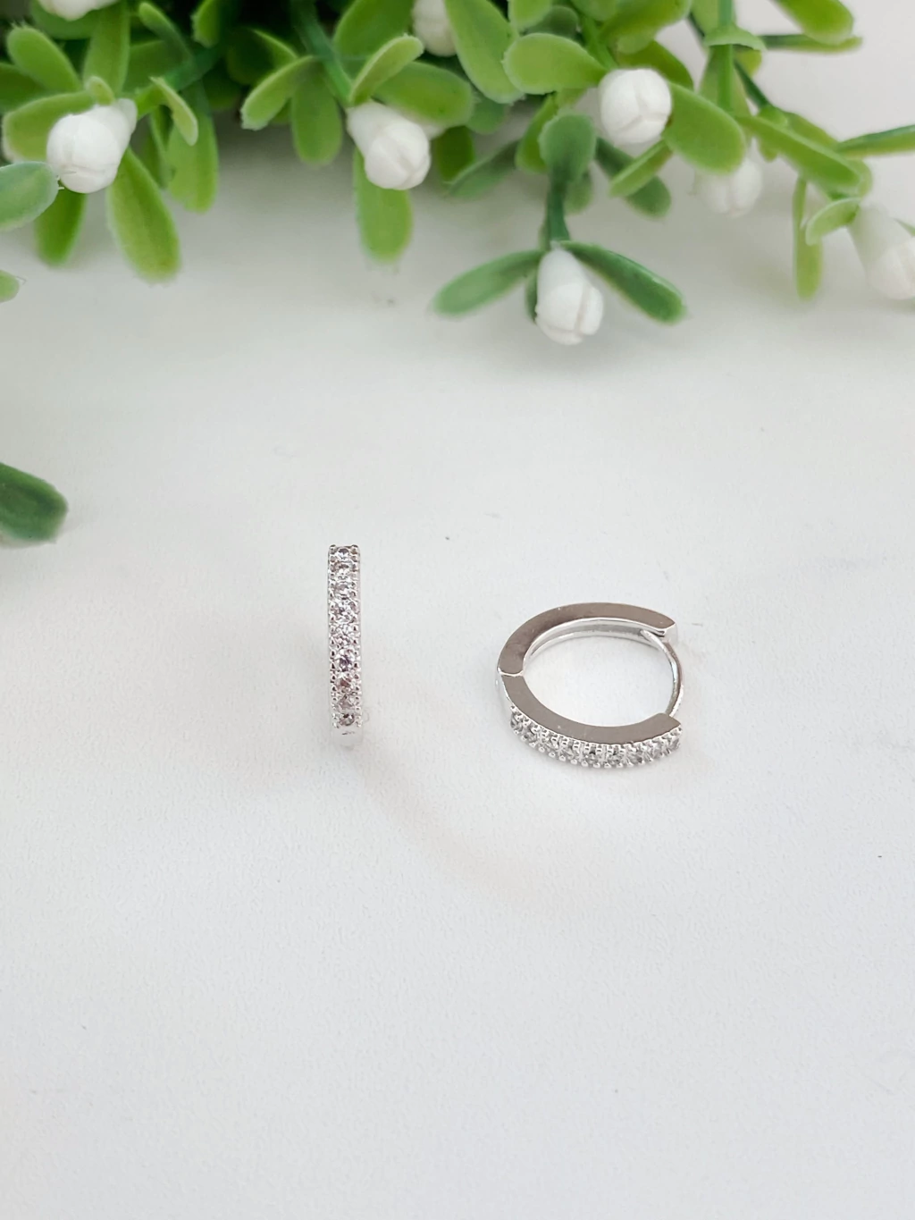Brinco Argolinha Cravejada 12mm - Banhado a Ródio Branco