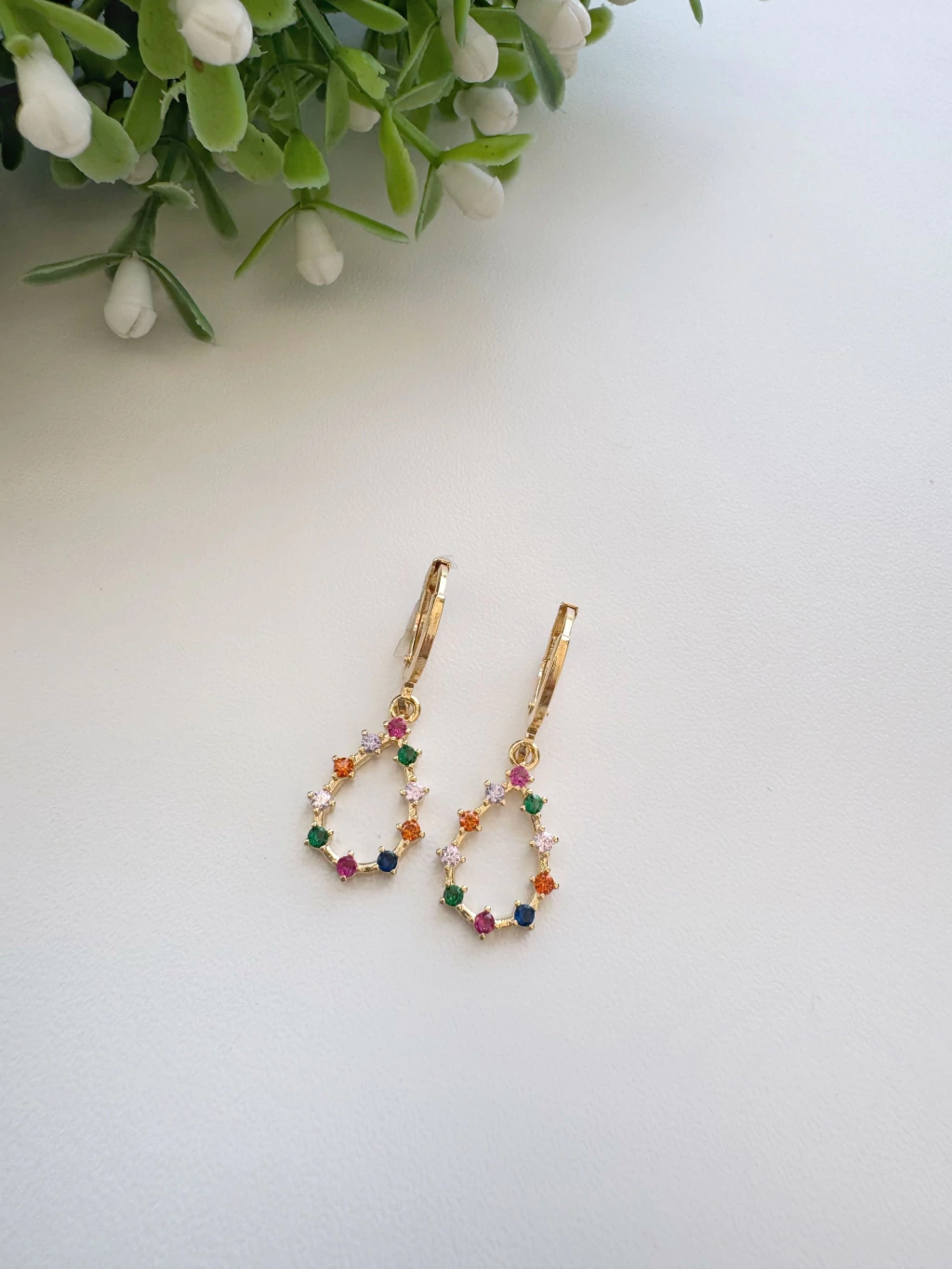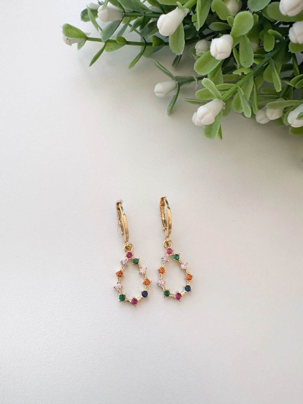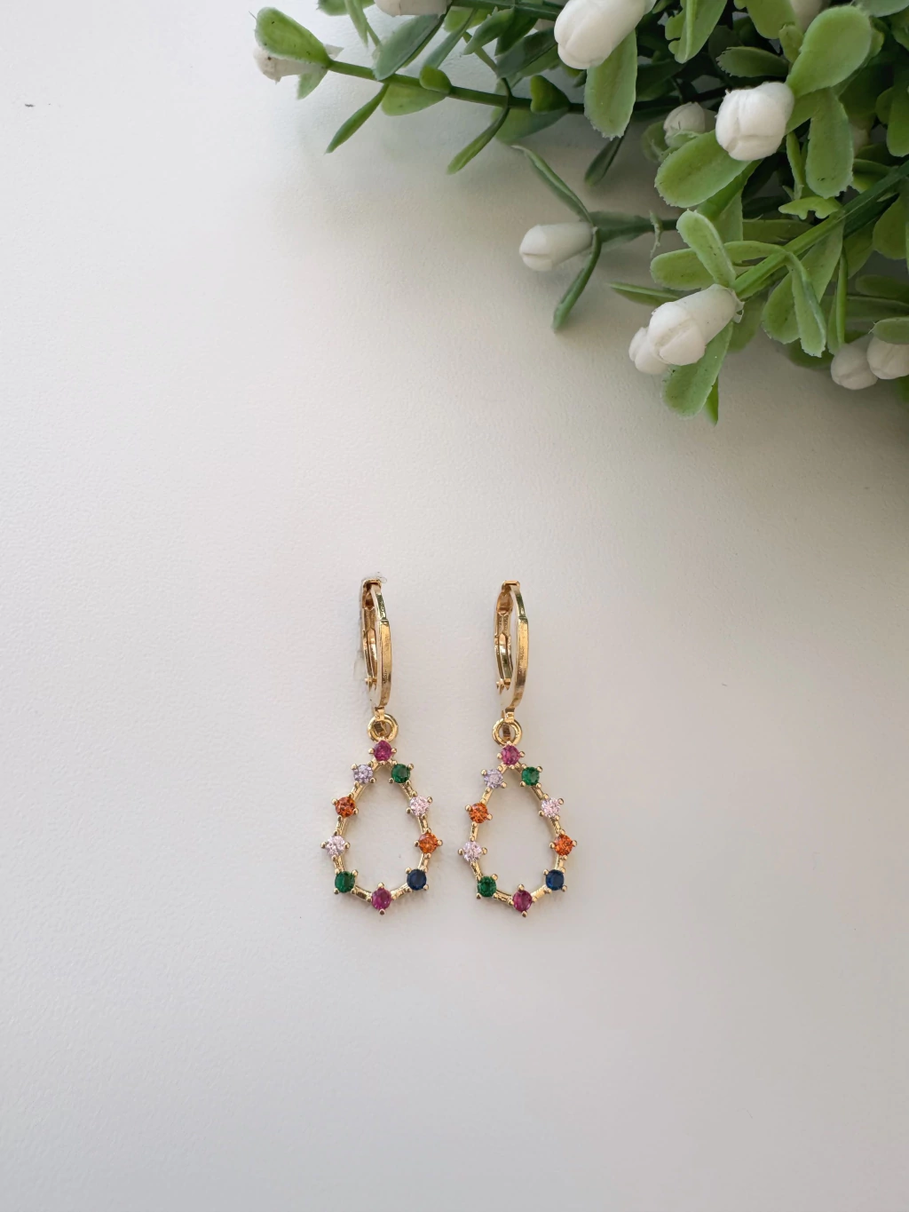 Brinco Argolinha Gota Vazada Colorida - Banhado a Ouro