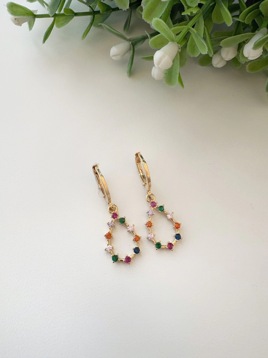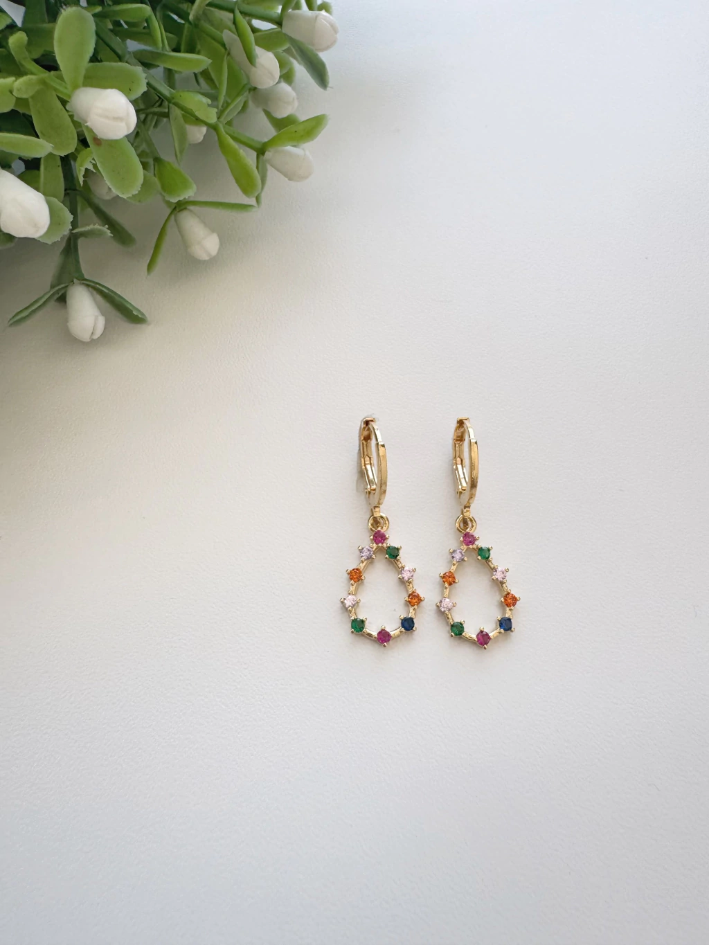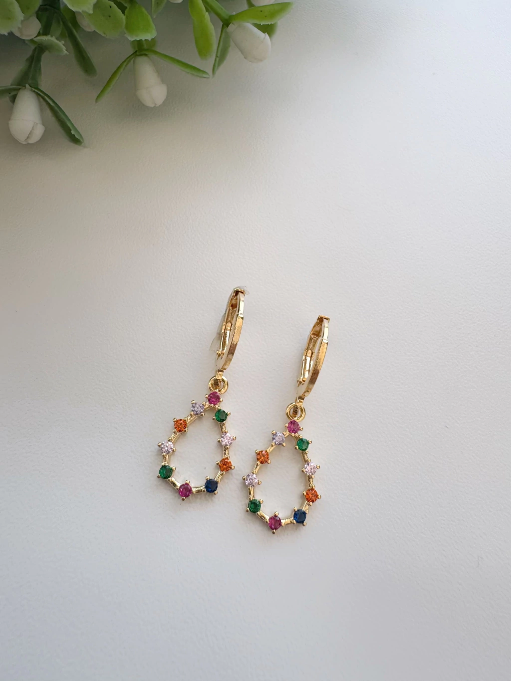 Brinco Argolinha Gota Vazada Colorida - Banhado a Ouro