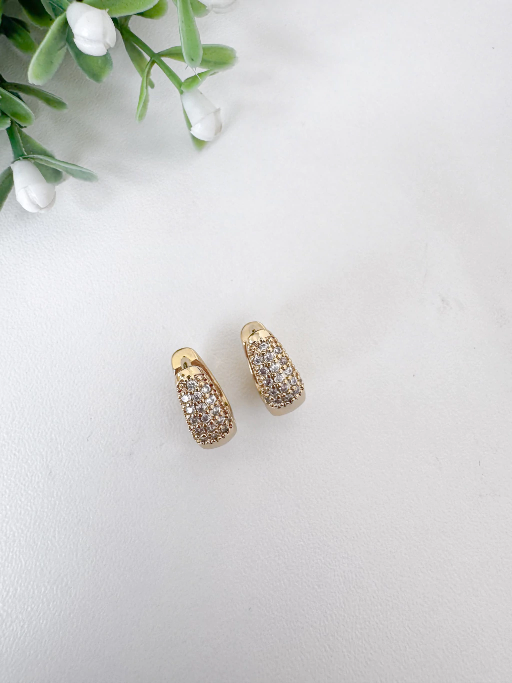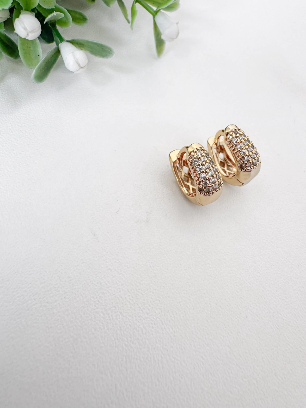 Brinco Argolinha Oval Cravejada 13- Banhado a Ouro