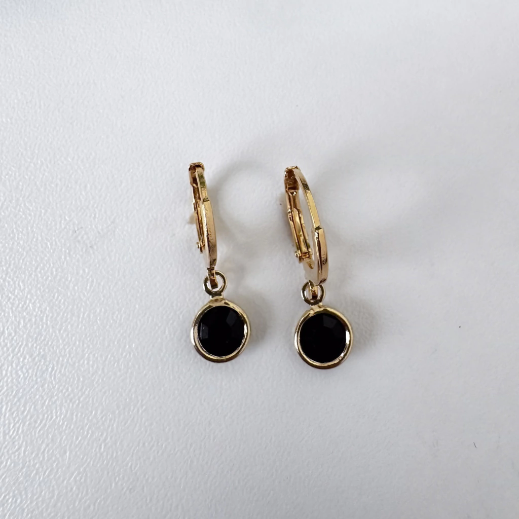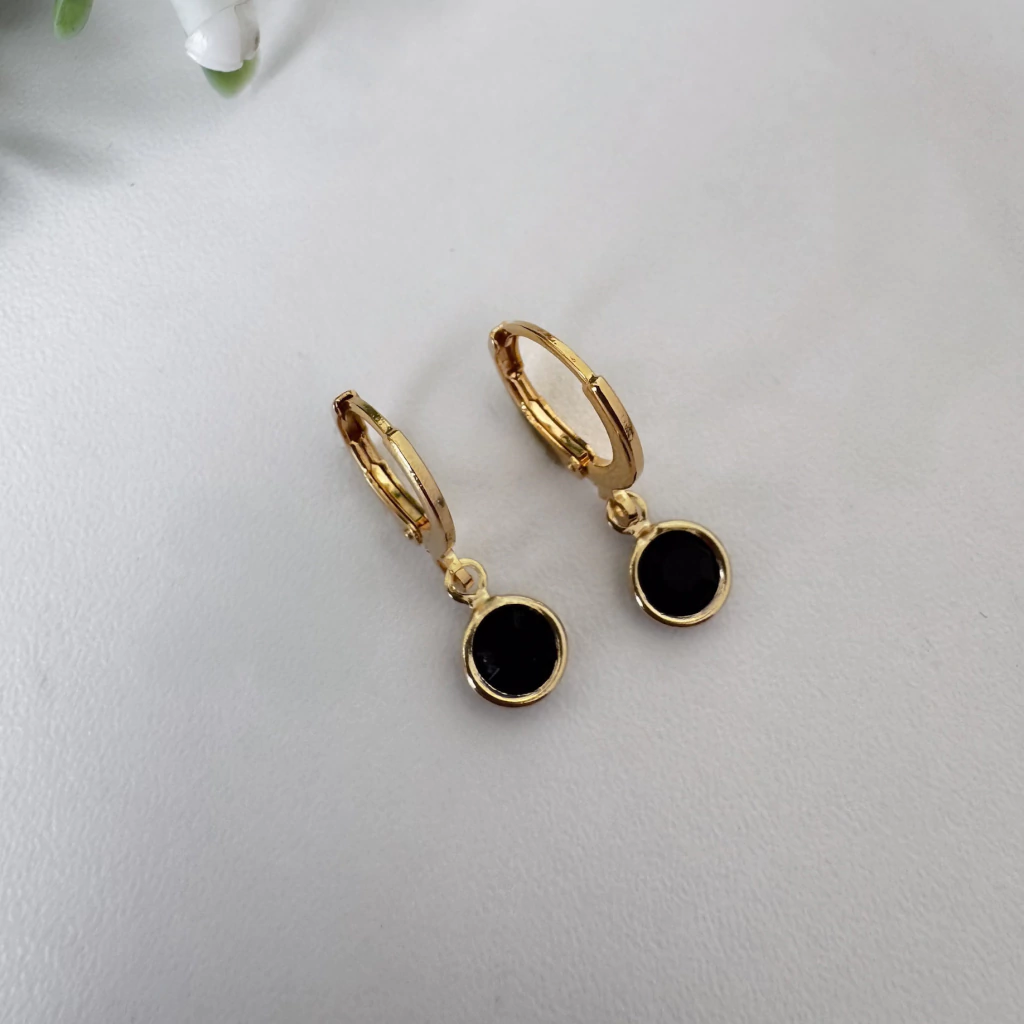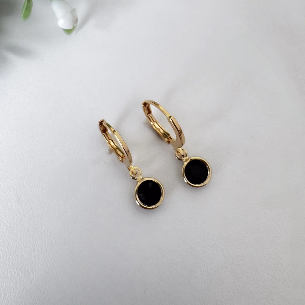 Brinco Argolinha Ponto de Luz Preto 6mm - Banhado a Ouro