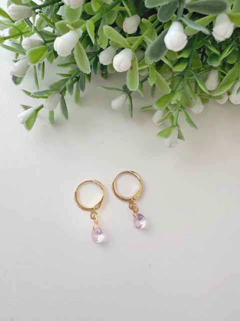 Brinco Argolinha Ponto de Luz Rosa - Banhado a Ouro