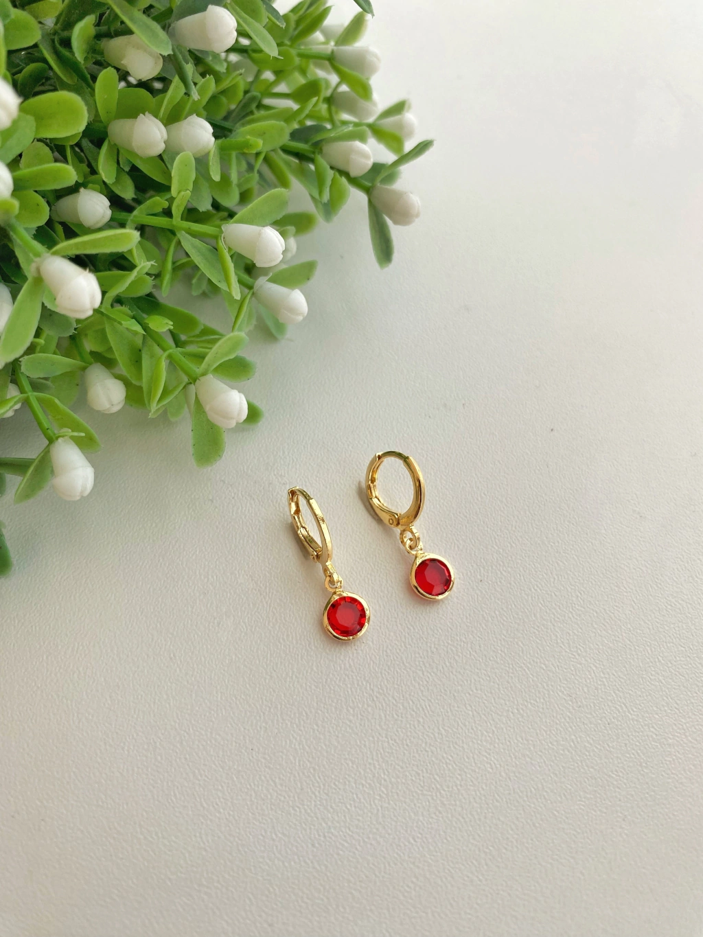 Brinco Argolinha Ponto de Luz Vermelha 6mm - Banhado a Ouro