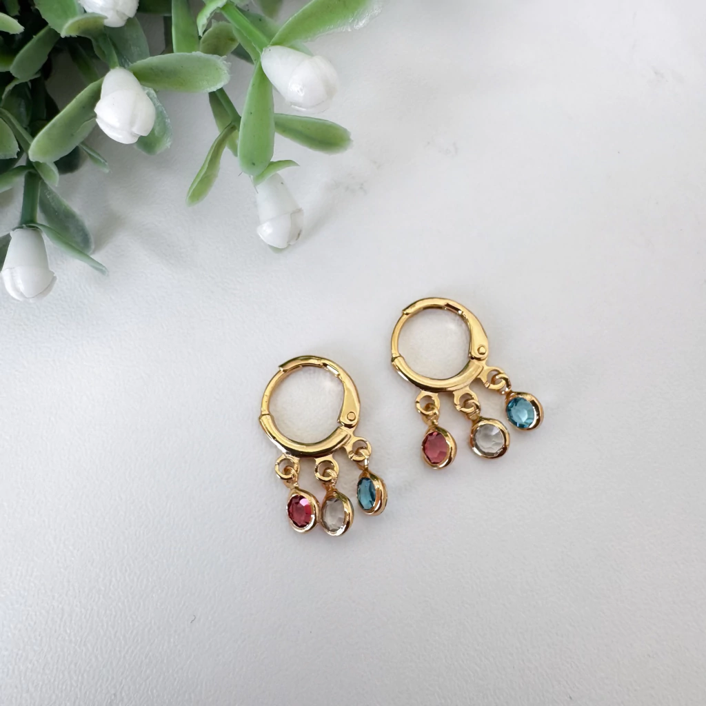 Charmoso e cheio de energia, esse brinco é perfeito para quem gosta de iluminar o visual com um toque de cor. A argolinha banhada a ouro traz aquele brilho clássico, enquanto os pontos de luz coloridos dão um ar alegre e moderno à peça. Um acessório versátil, que pode ser usado no dia a dia ou para dar vida a produções mais elegantes.