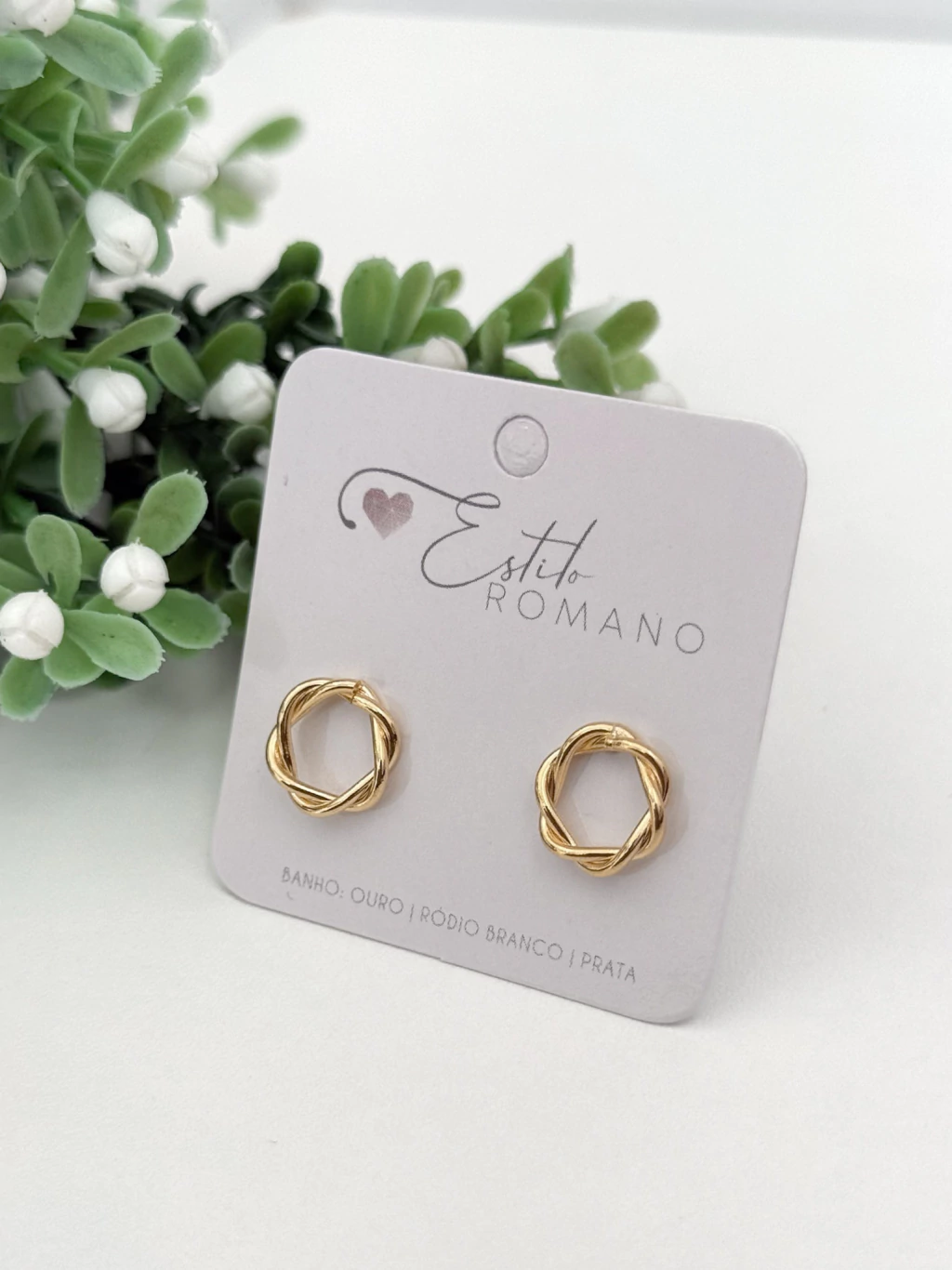 Brinco Círculo Trançado Vazado - Banhado a Ouro