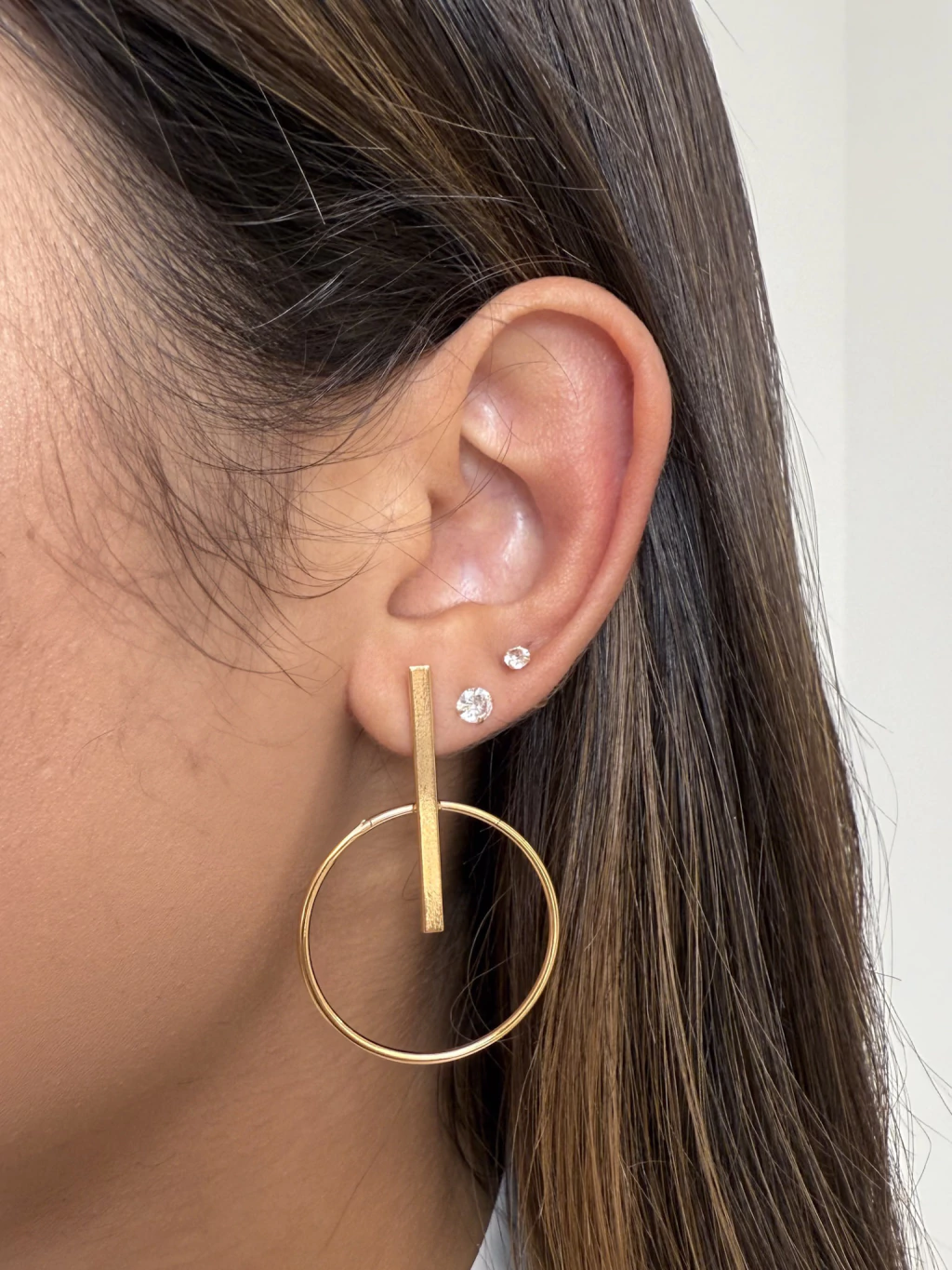 Moderno, leve e super estiloso! O design com fio reto atravessando o círculo vazado traz um ar contemporâneo e elegante, perfeito pra quem gosta de peças diferentes e cheias de charme. Ideal pra compor looks autênticos sem esforço!