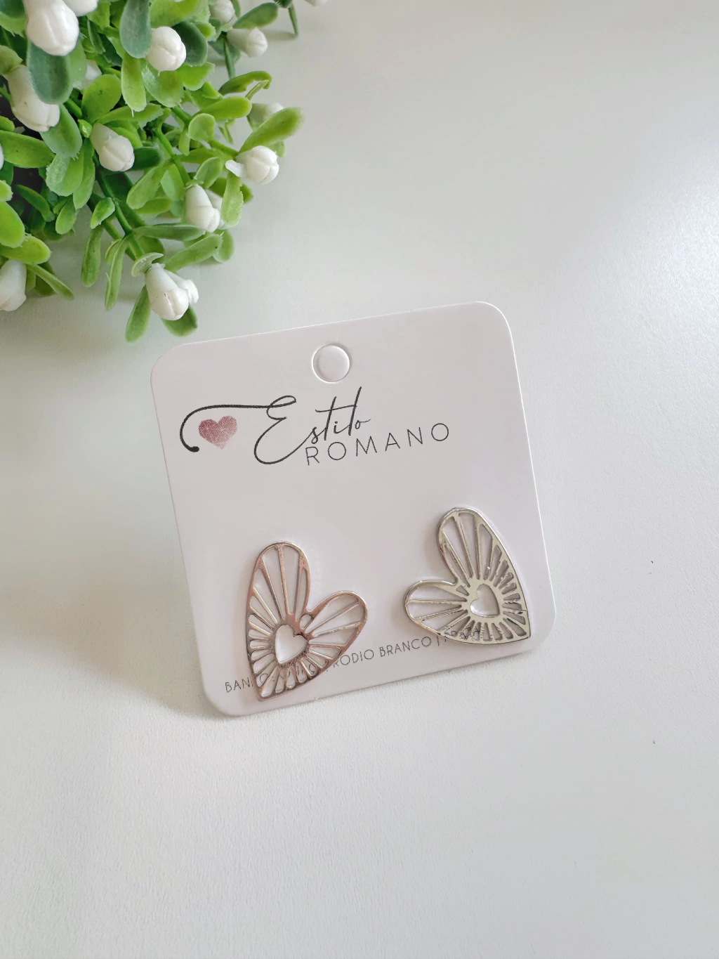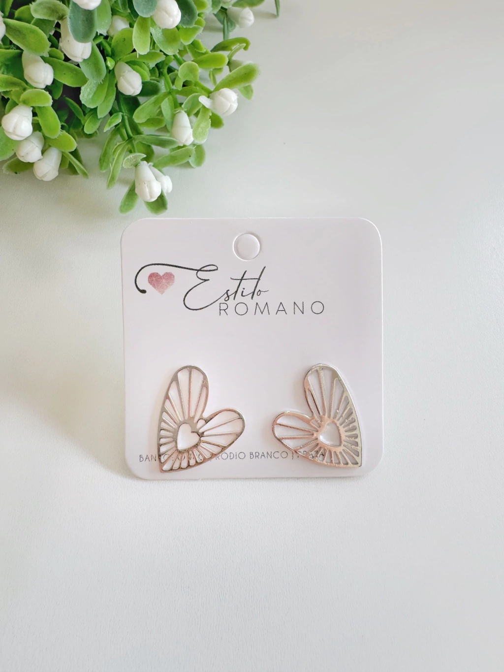 Brinco Coração Aramado - Banhado a Ródio Branco