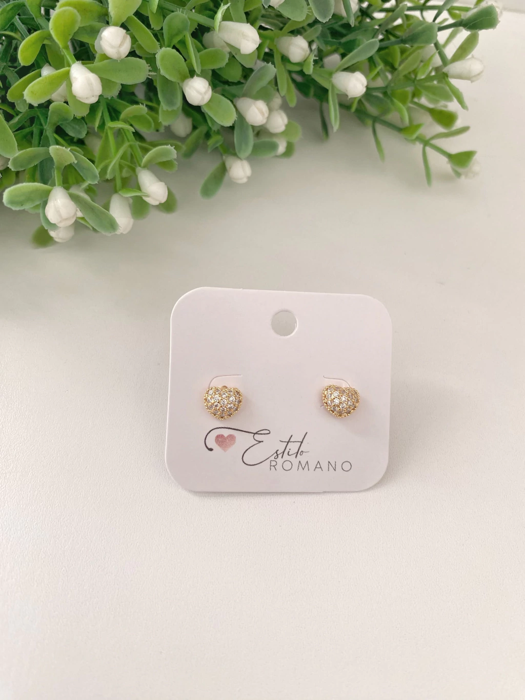 Brinco Coração Mini Cravejado Zircônia Banhado a Ouro