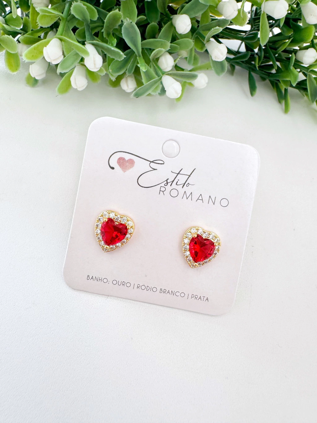 Este brinco em formato de coração, com zircônia vermelha vibrante, é perfeito para quem ama um visual delicado e cheio de charme. A peça destaca um brilho intenso e design atemporal, ideal para completar qualquer look com sofisticação e romantismo.