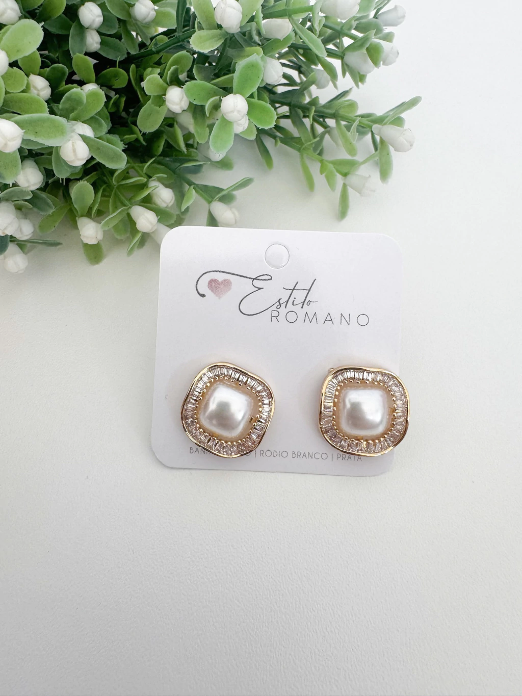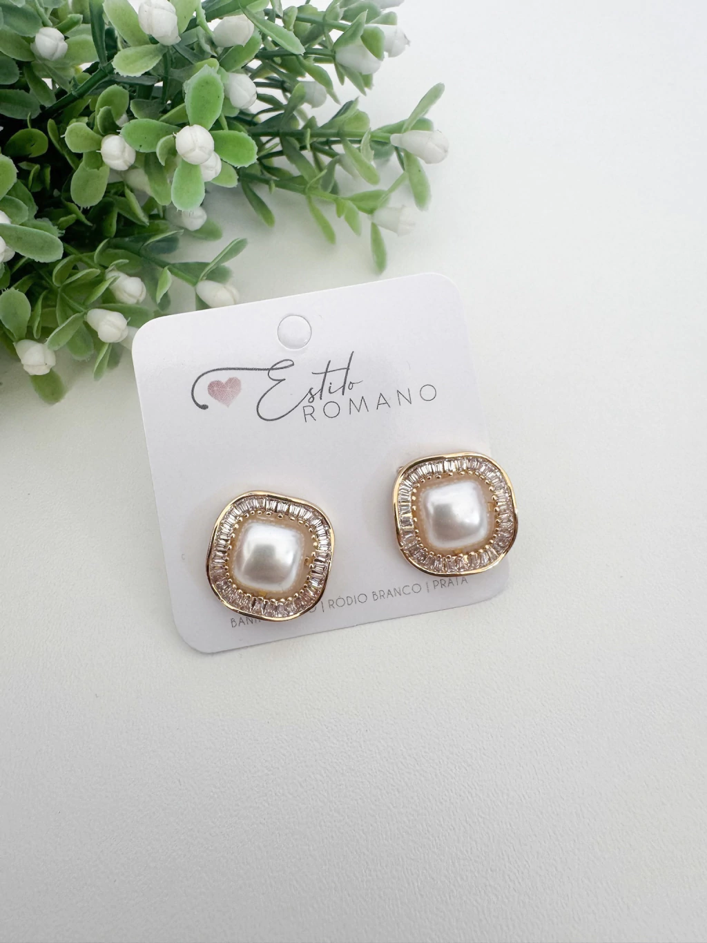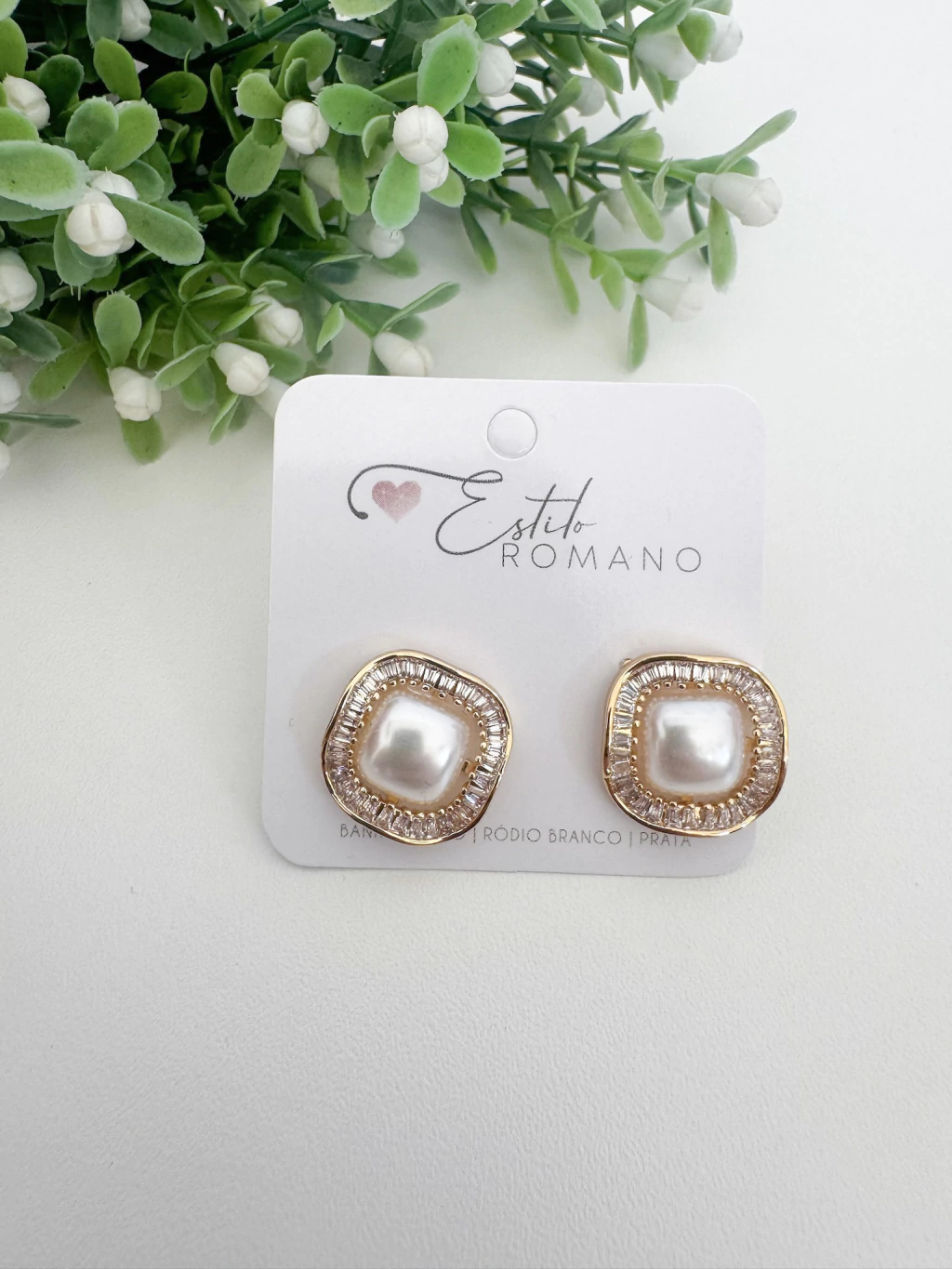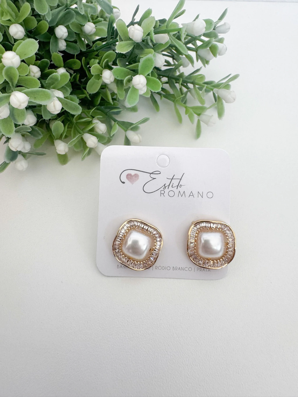 Brinco Cravejado com Pérola - Banhado a Ouro