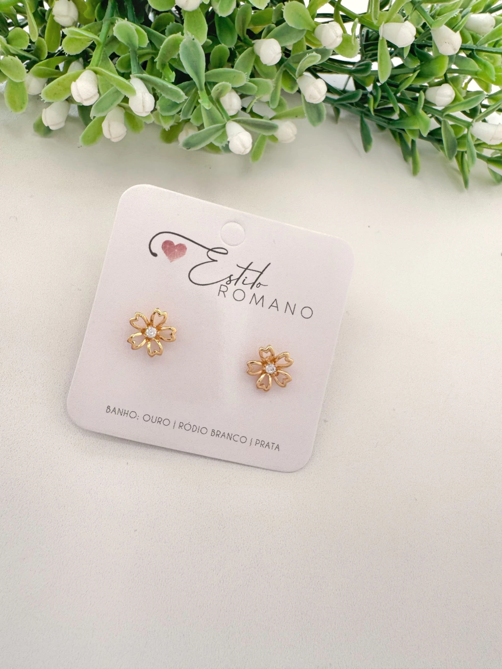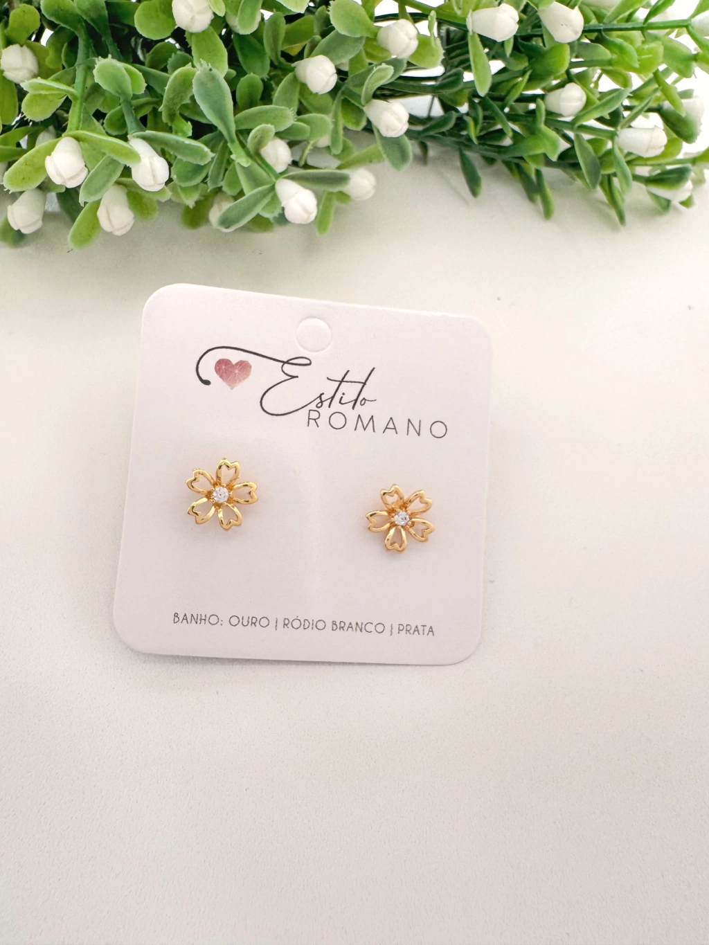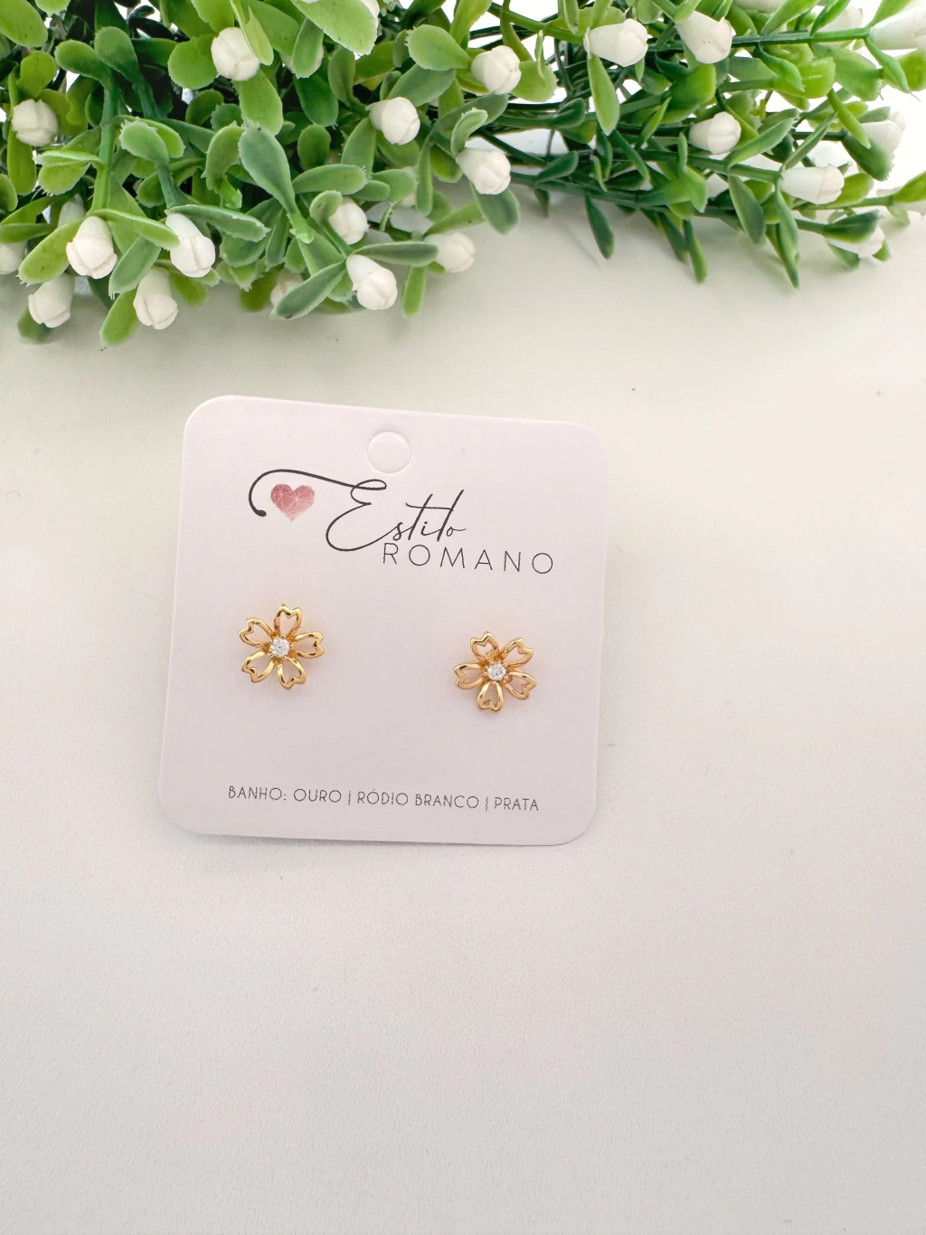 Brinco Flor Vazada 9mm - Banhado a Ouro