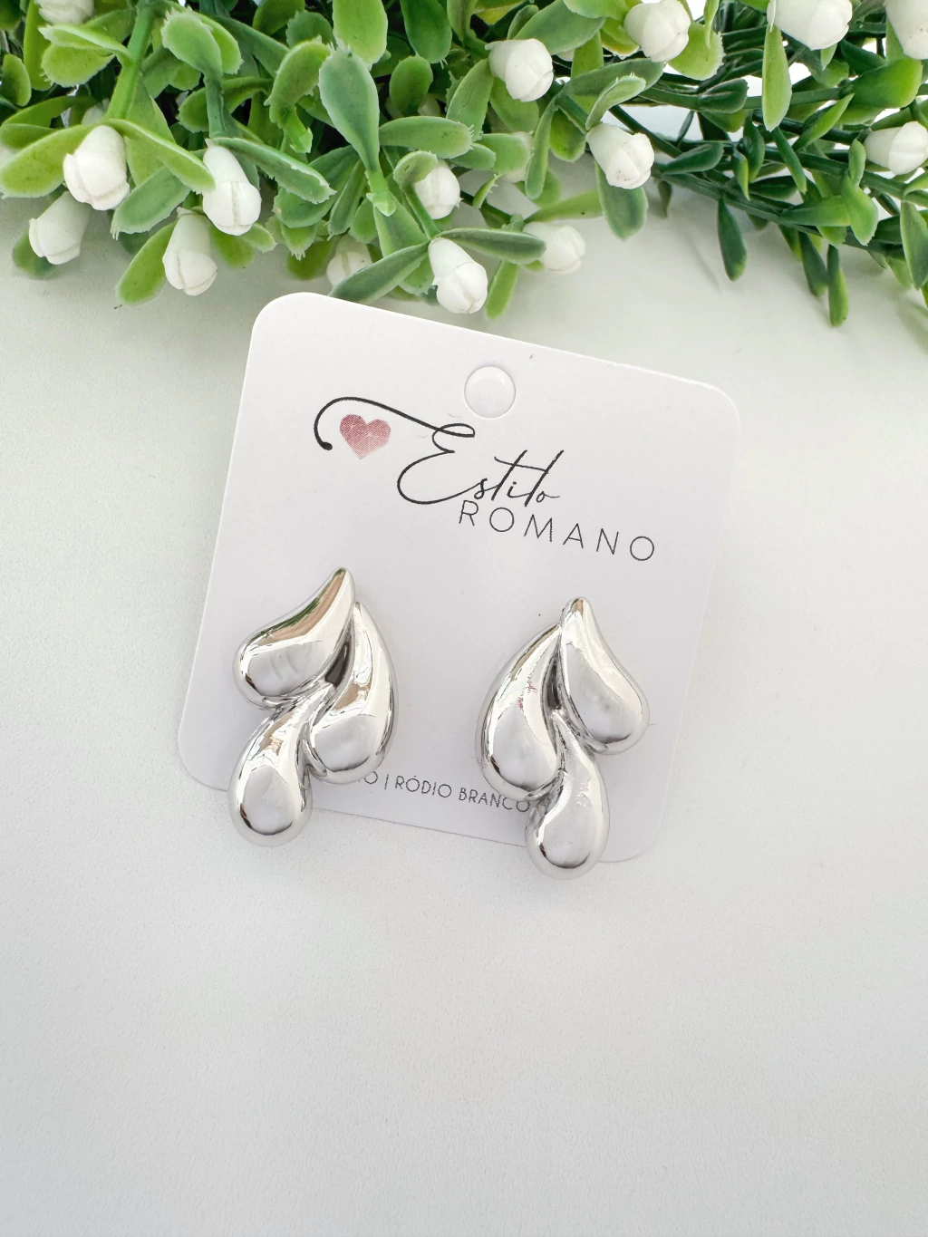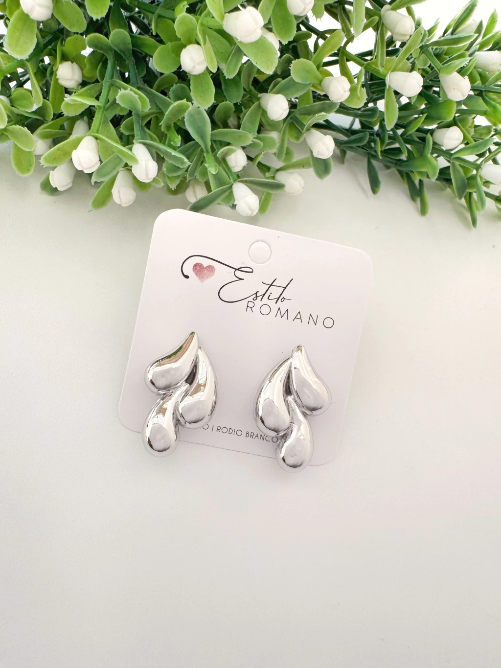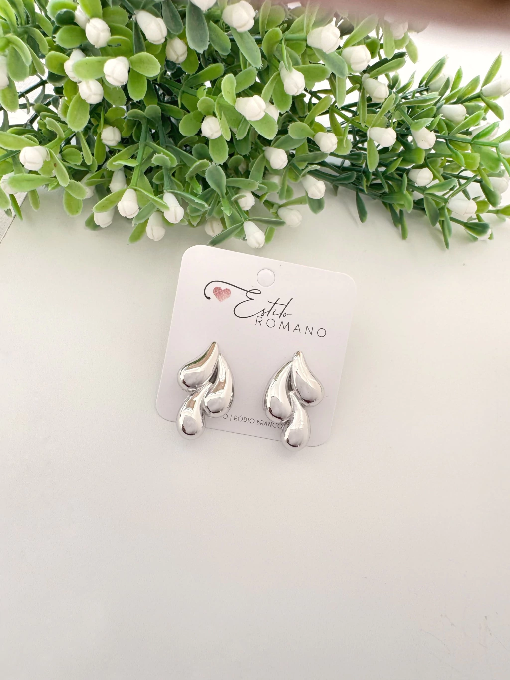 Brinco Gota Tripla Curvada - Banhado a Ródio Branco