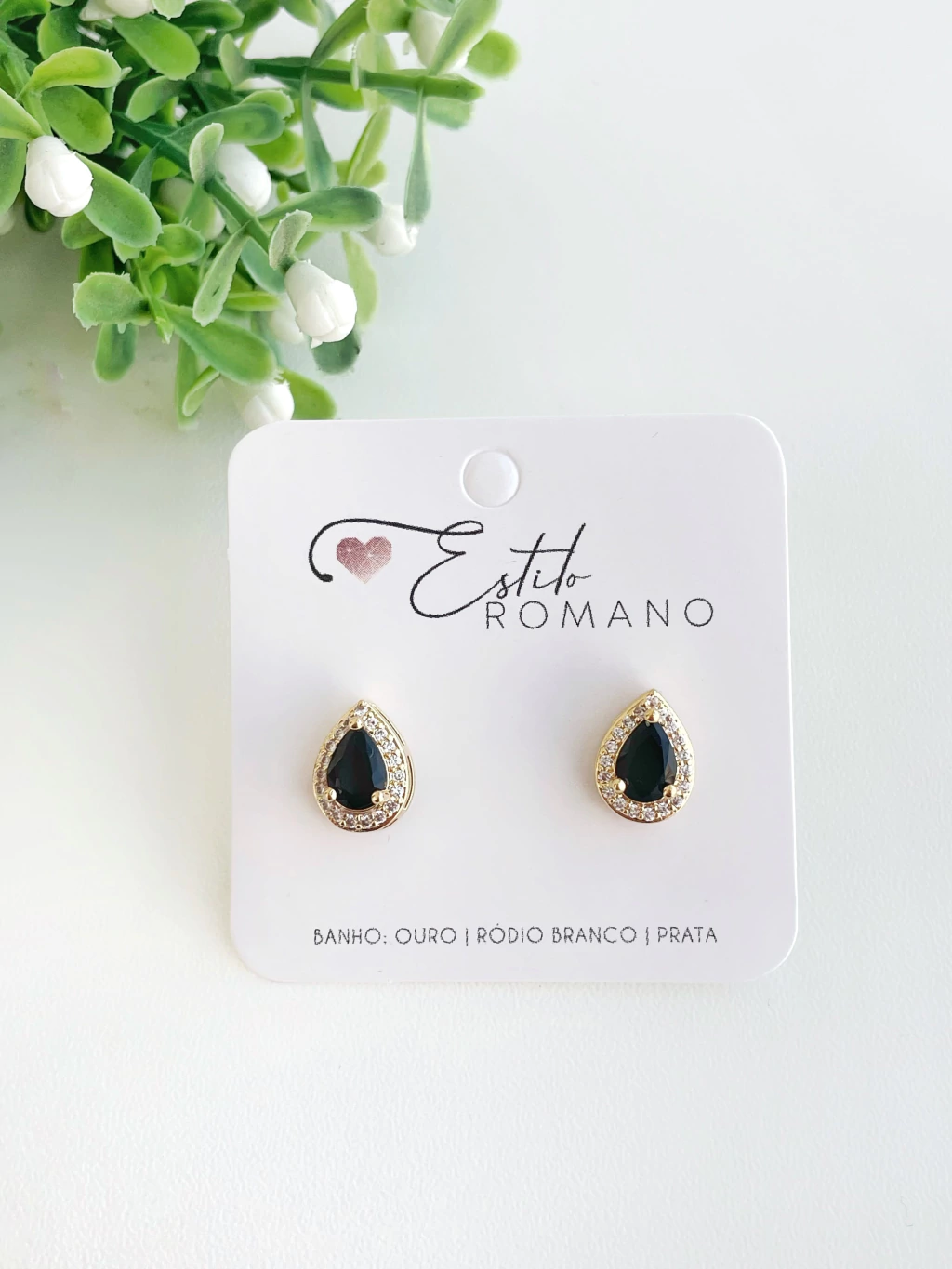 Brinco Gota Cravejada Zircônia Preta 11mm - Banhado a Ouro