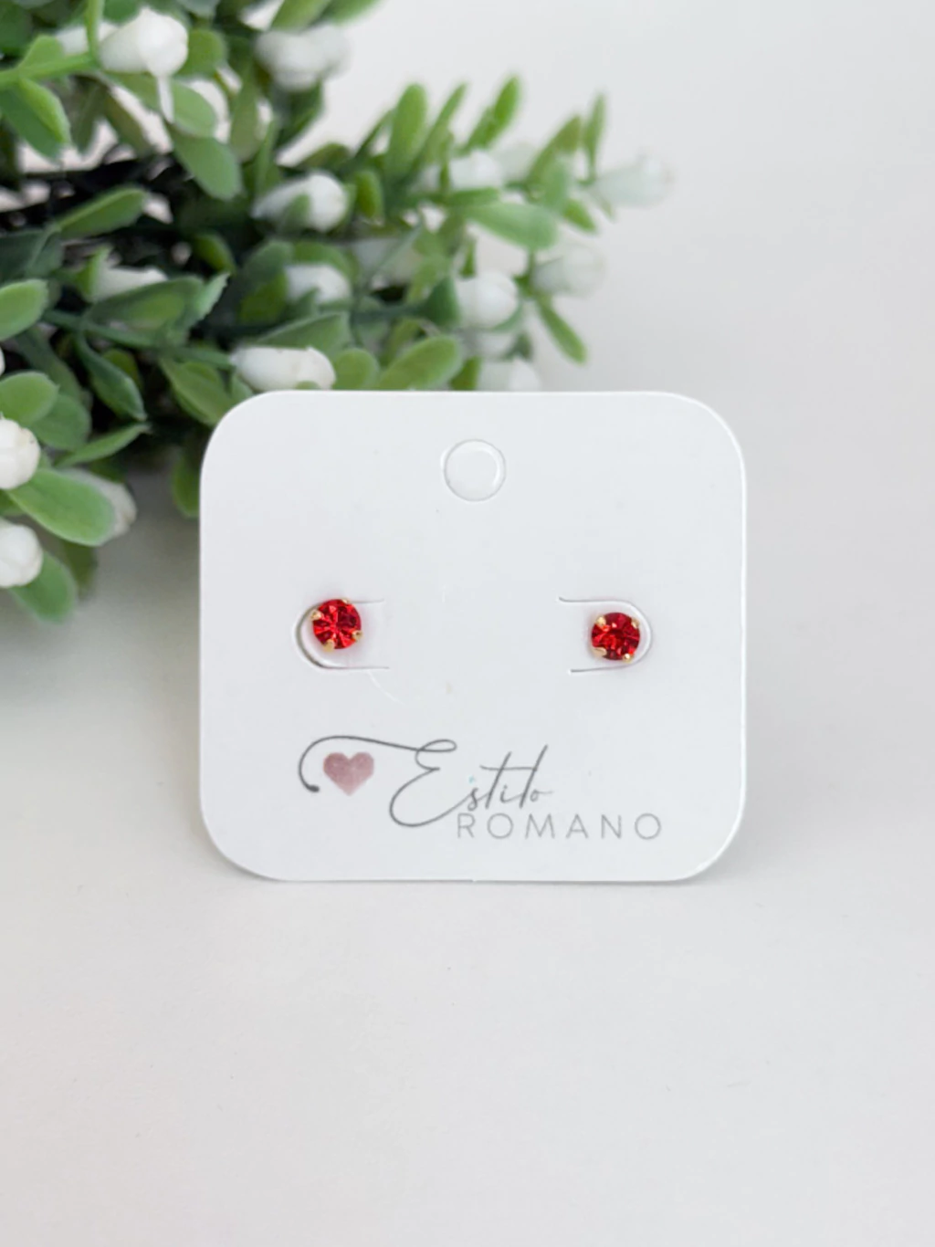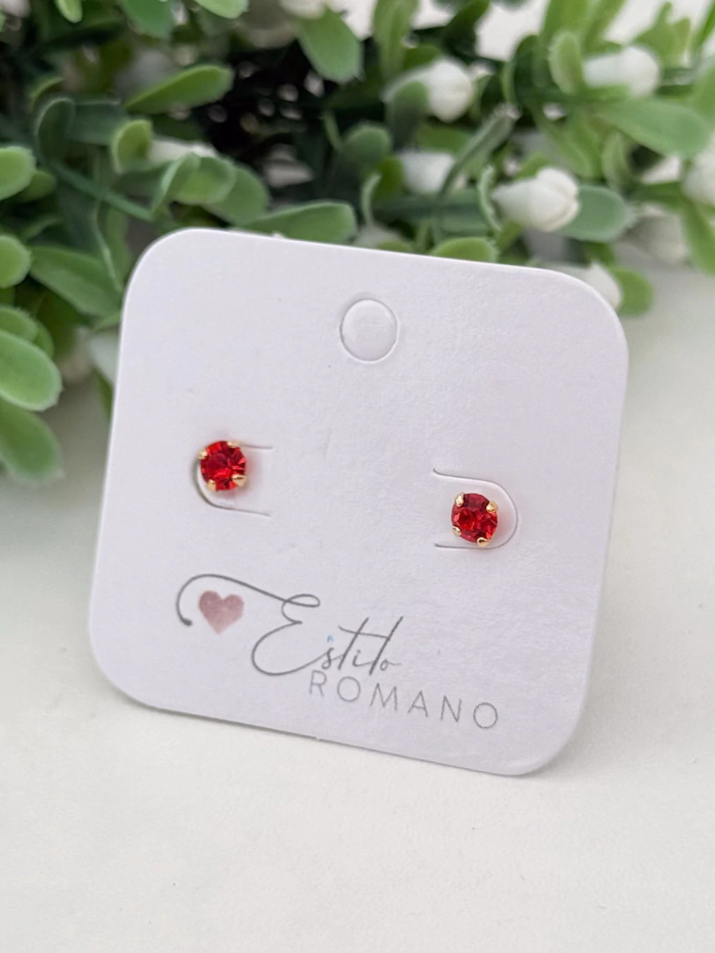 Brinco Ponto de Luz Vermelho 4mm - Banhado a Ouro