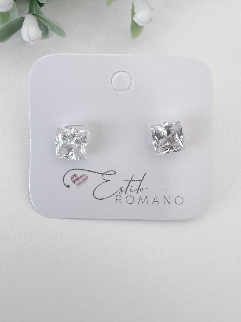 Brinco Quadrado Cravejado 7mm - Banhado a Prata