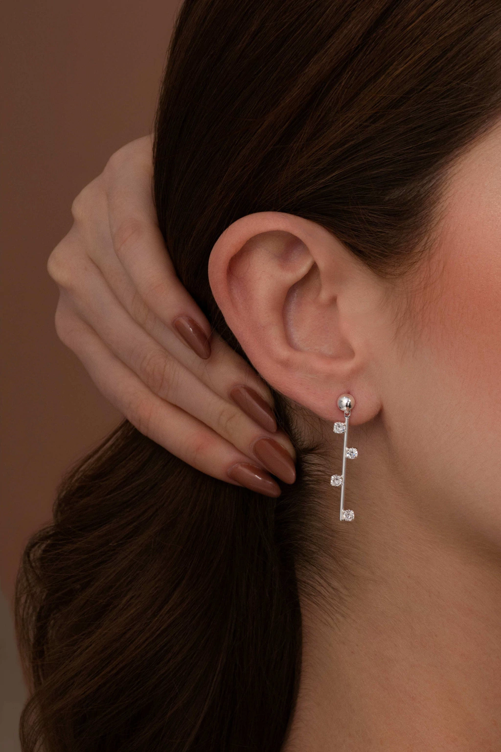 Brinco Reto 4 Zircônias - Banhado a Prata
