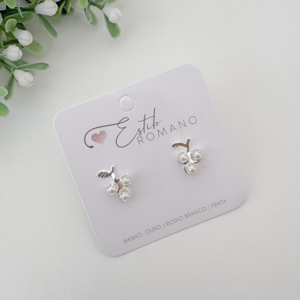 Brinco Uva com Pérolas - Banhado a Prata