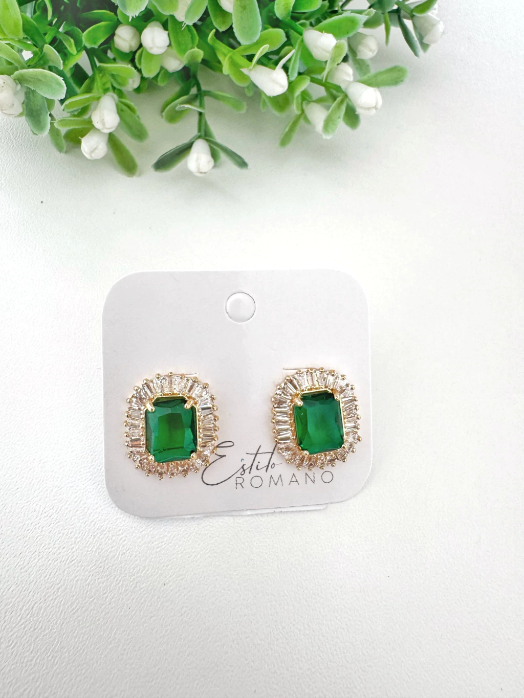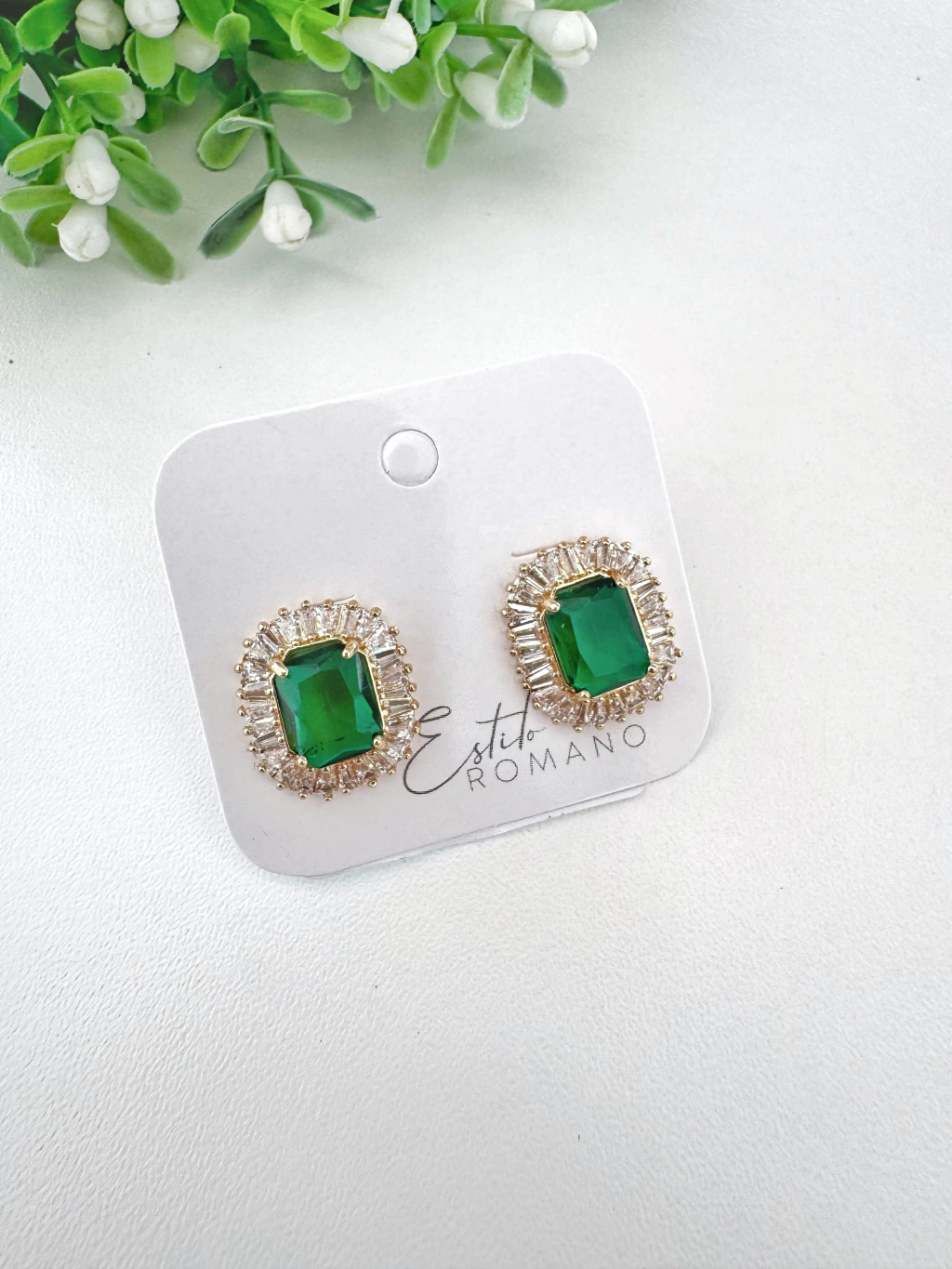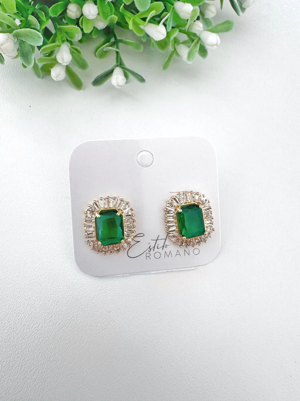 Brinco Zircônia Verde com Microzircônias Cravejadas 16mm - Banhado a Ouro