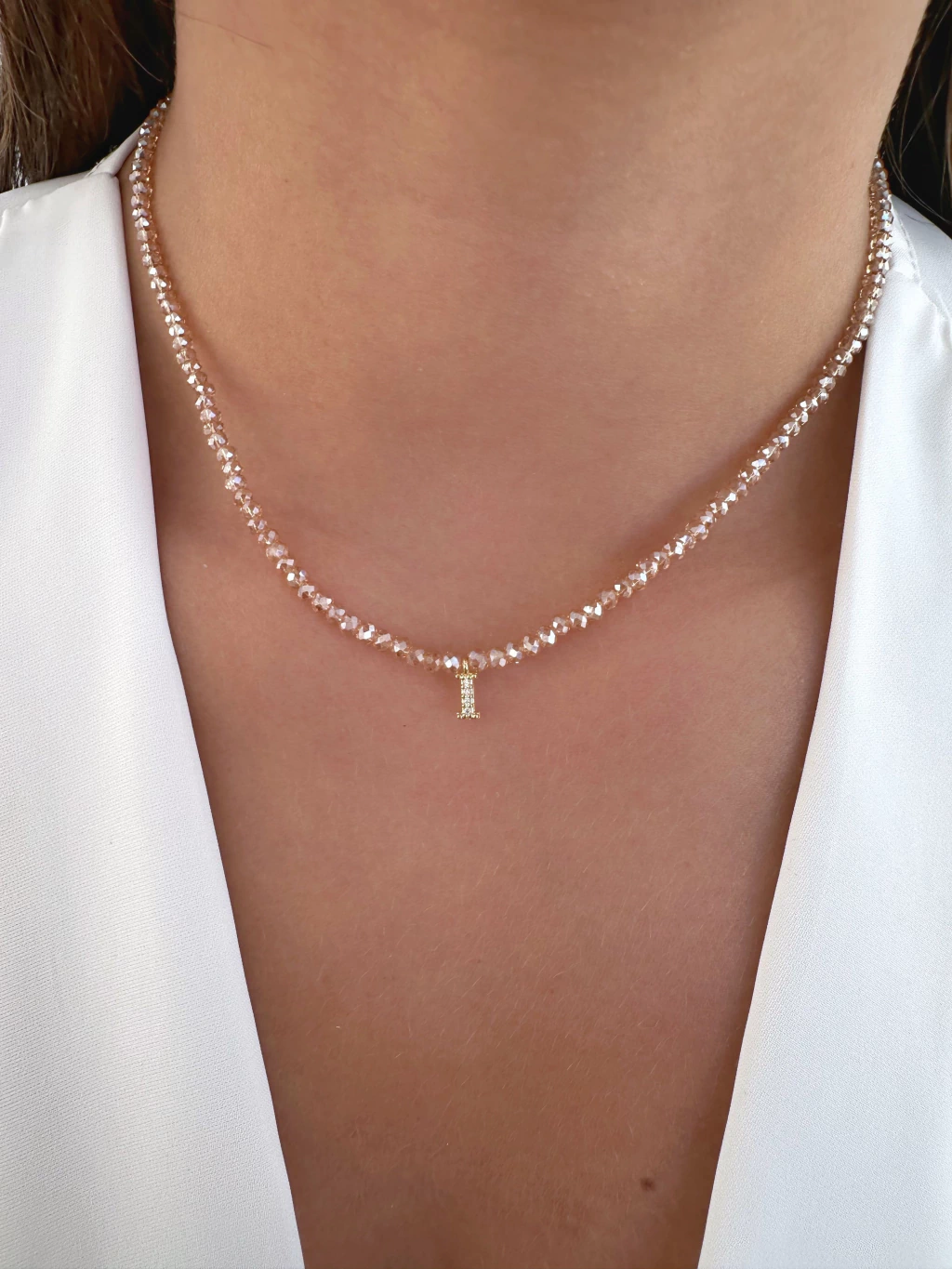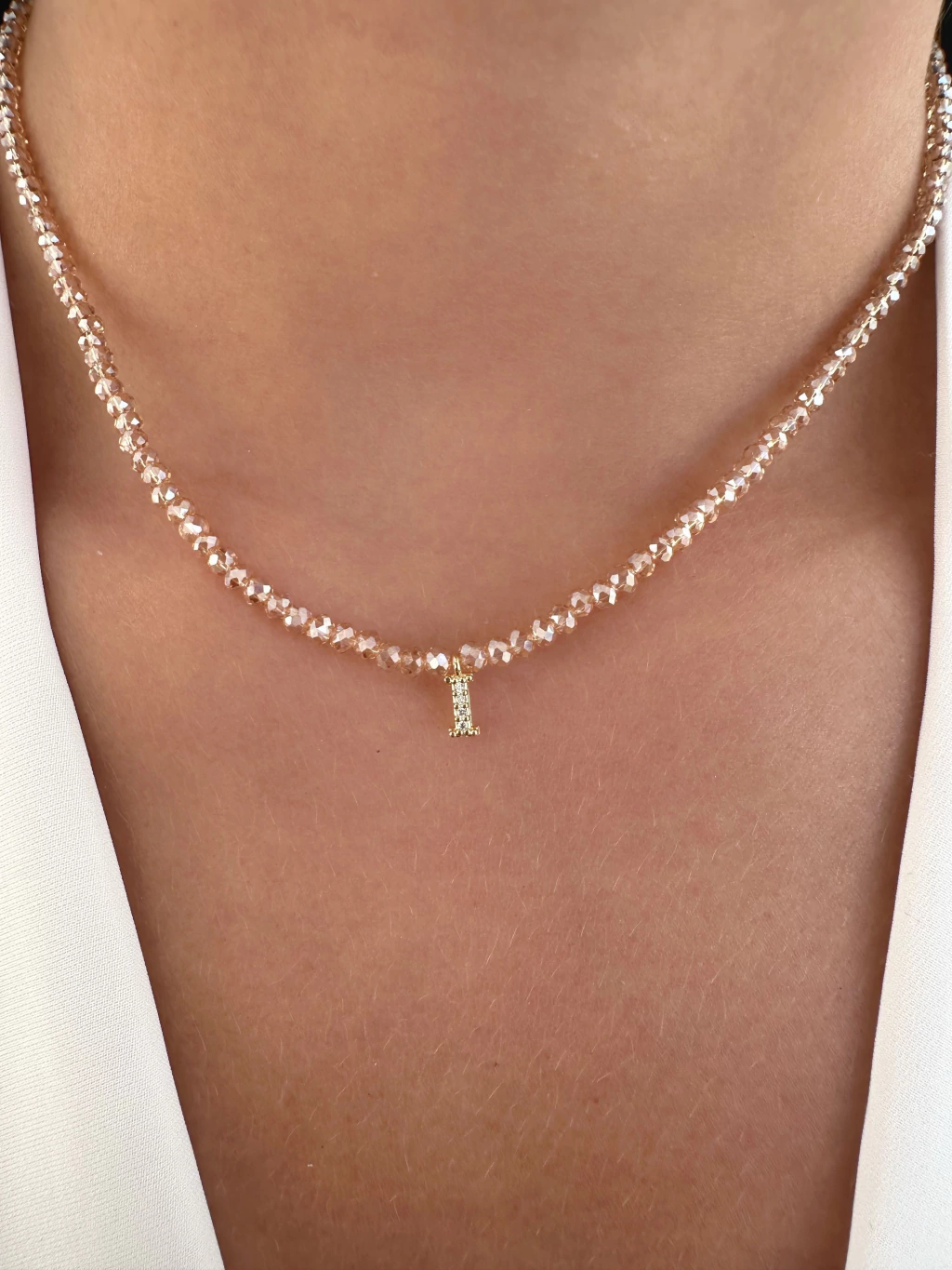 Choker Cristais Naturais Doce de Leite Letra I - Banhado a Ouro