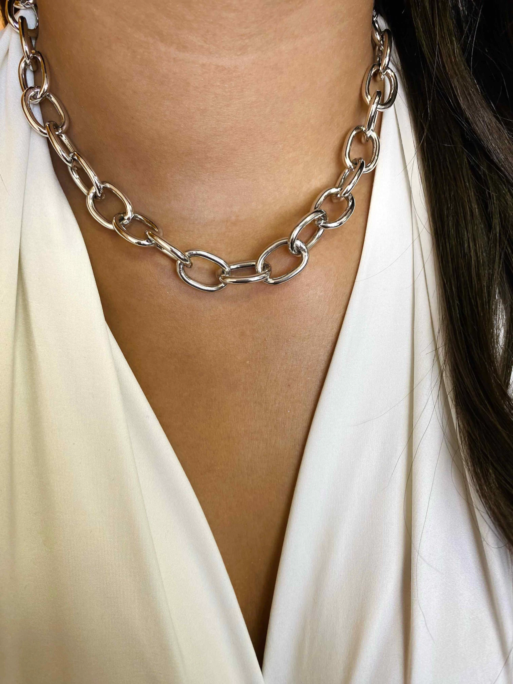 A Choker Elos Cadeado adiciona o toque ousado e esperado ao seu look. Com seu design clássico e moderno, ela não passa despercebida. É perfeito para transformar seu look, podendo apostar também em mixes diferentes para compor um visual super estiloso e jovial, sem perder a elegância.