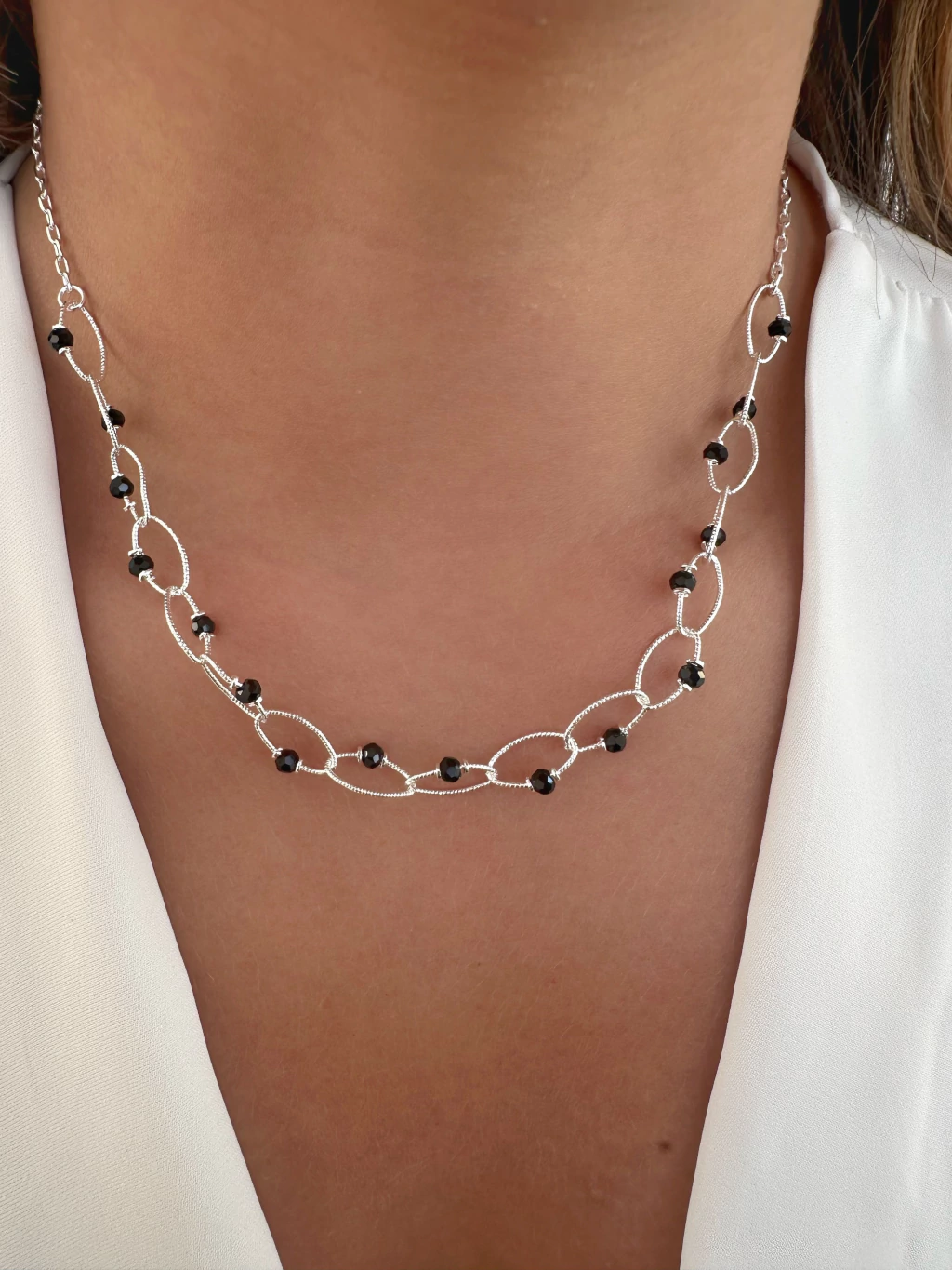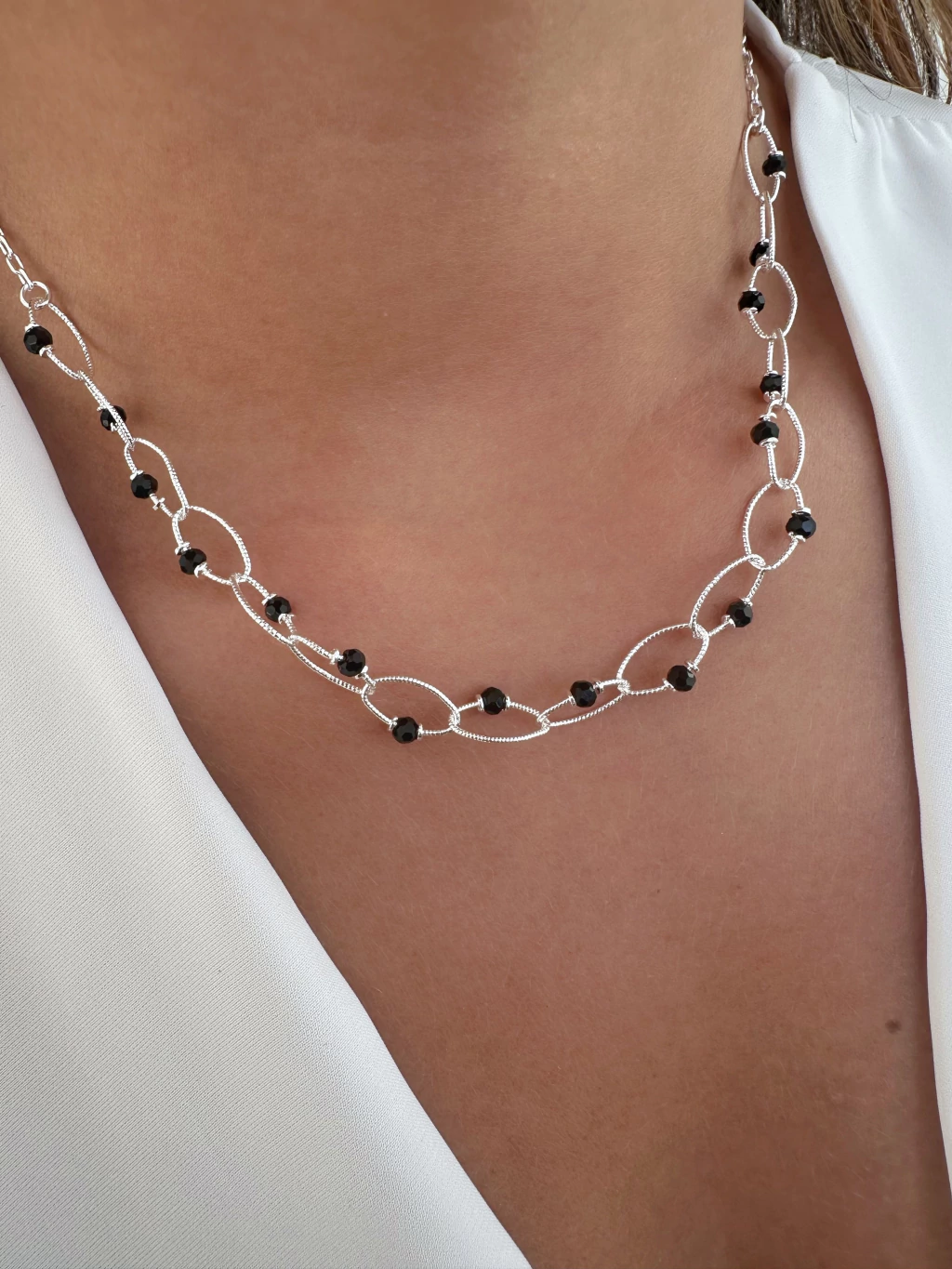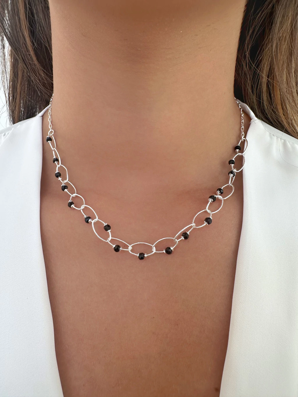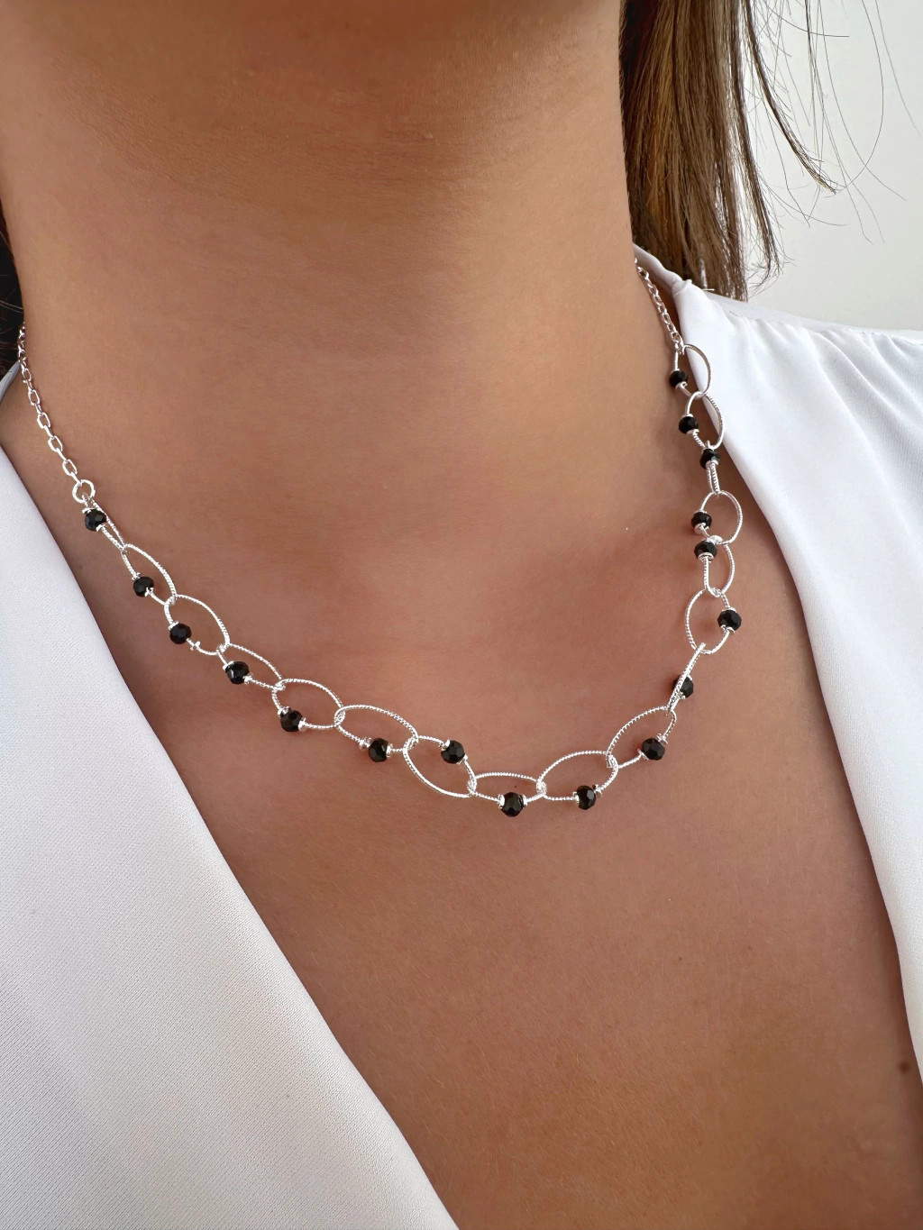 Choker Elos com Zircônias Pretas - Banhado a Prata
