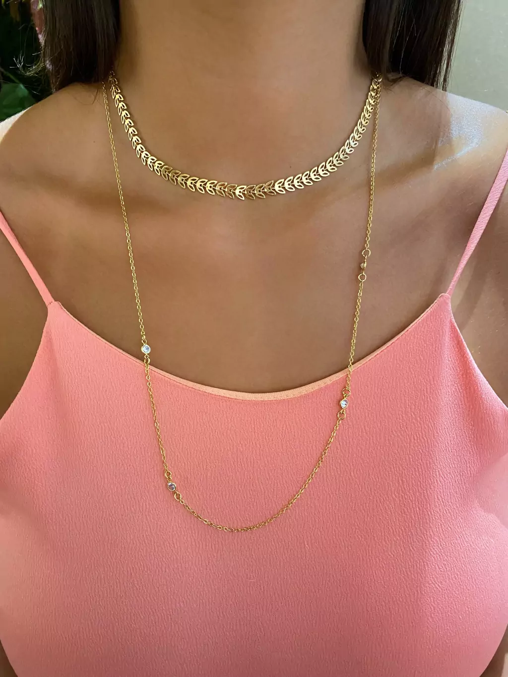 As chokers são perfeitas tanto para montar combinações quanto para se usar sozinhas, são ideais pra você arrasar! A Choker de Folhas é um acessório que é versátil, podendo ser usada de dia ou de noite, no dia a dia e em ocasiões especiais. É uma peça coringa, indispensável de se ter no seu porta jóias. Faça combinações com brincos, pulseiras e anéis; vá do clássico ao moderno. Seja ousada e fique ainda mais MARAVILHOSA!