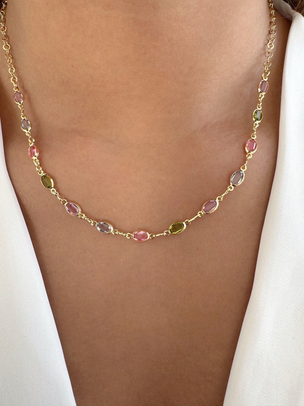 A Choker Zircônias Rosas é a escolha perfeita para quem ama delicadeza com um toque de brilho marcante. As zircônias em tom rosado trazem romantismo e suavidade, enquanto o banho em ouro garante elegância e sofisticação. Uma peça versátil que pode ser usada sozinha para um visual delicado ou em camadas para um look moderno e cheio de estilo.
