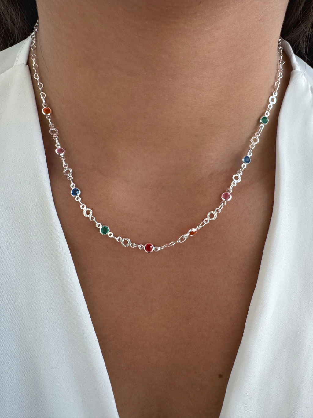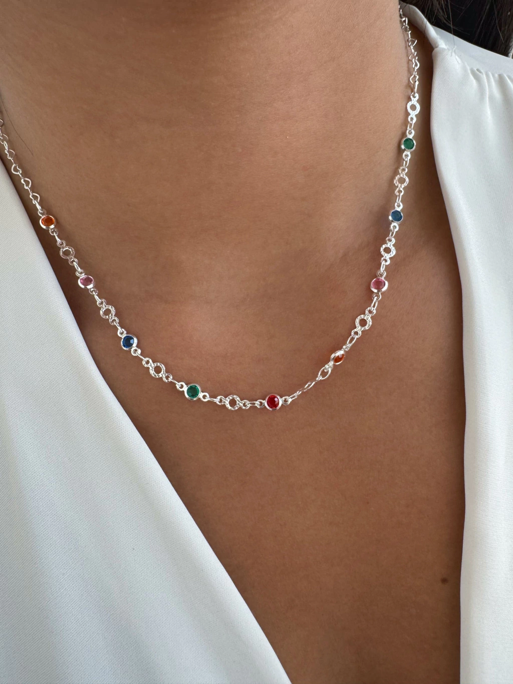 Essa choker é puro brilho e alegria! As zircônias coloridas trazem um toque moderno e divertido, perfeito para iluminar qualquer look. Ideal para quem gosta de acessórios que se destacam, ela é uma peça leve e cheia de personalidade, perfeita para usar sozinha ou em combinações.