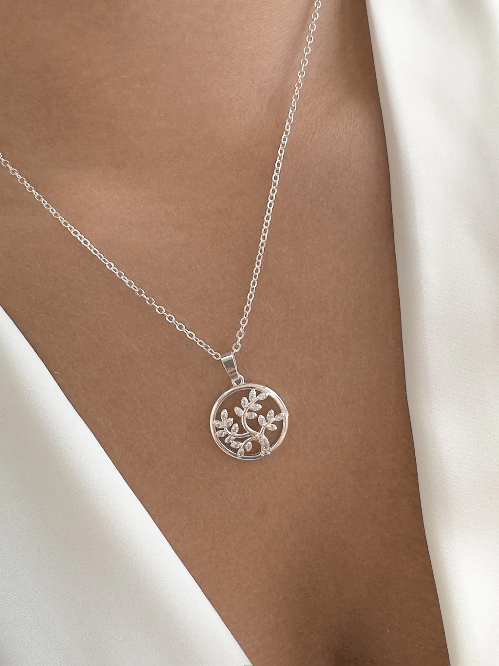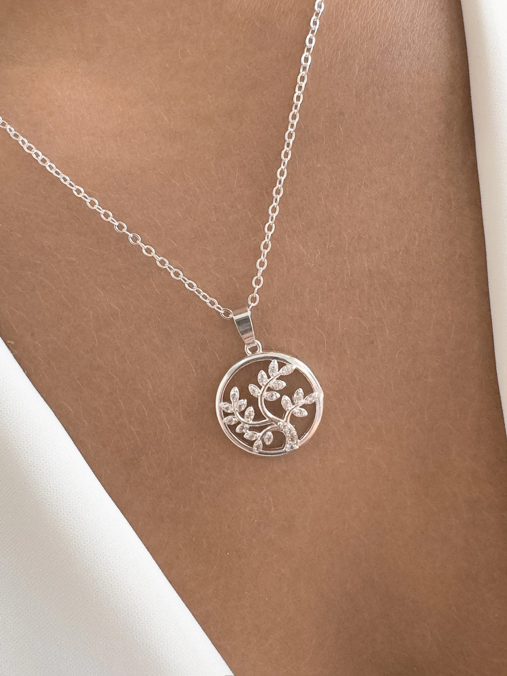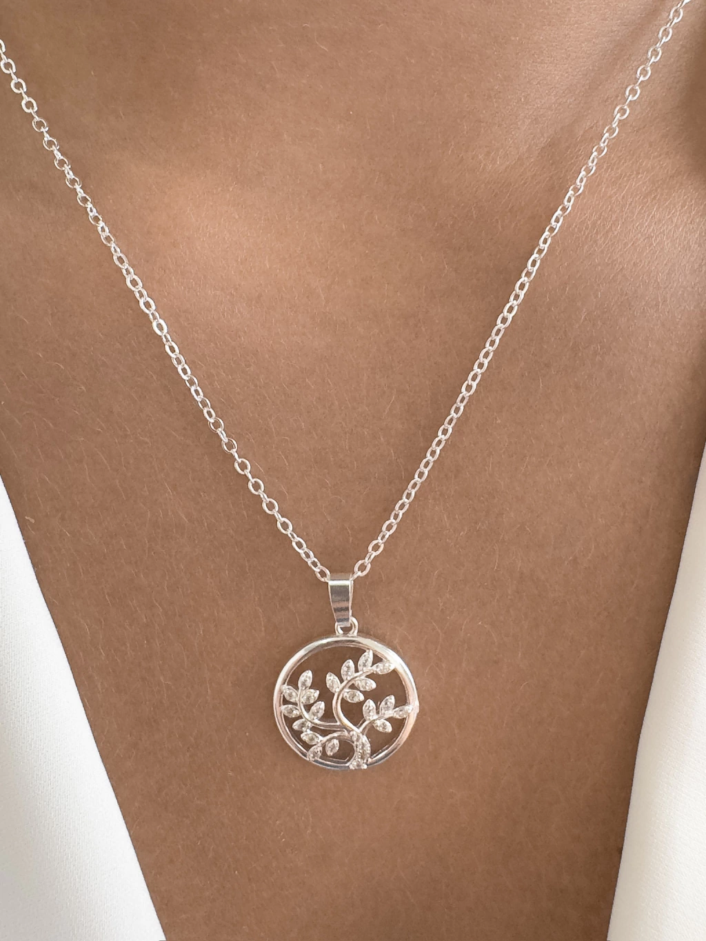 Colar Árvore da Vida com Zircônias - Banhado a Prata